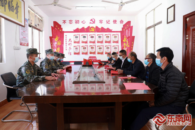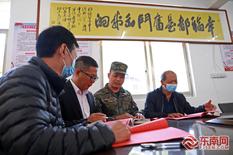 上党村鸟瞰。刘欢 供图 “习近平总书记在二十大报告中指出,全面推进乡村振兴,坚持农业农村优先发展,巩固拓展脱贫攻坚成果,加快建设农业强国,扎实推动乡村产业、人才、文化、生态、组织振兴......”在上党村村委楼会议室,武警宁德支队官兵与村民围坐在一起,拿着支队官兵收集整理制作的党的二十大宣传资料,相互交流探讨,共同学习党的二十大内容。