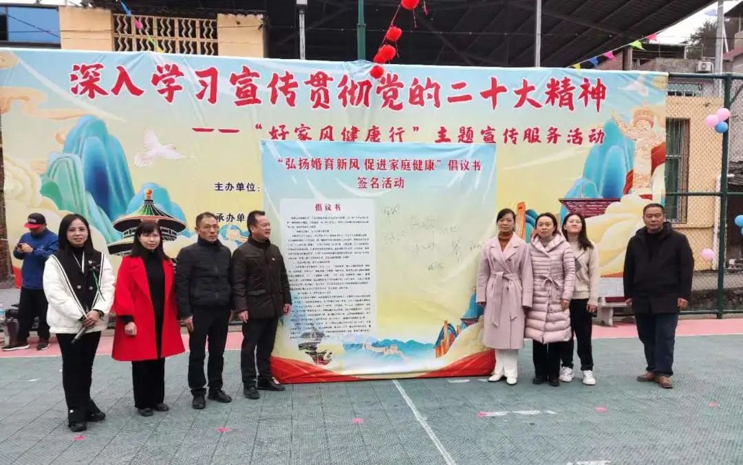 活动中,县计生协会常务专职副会长朱文剑宣读了“弘扬婚育新风 促进家庭健康”倡议书,并表示将以实施家庭健康促进行动项目为契机,通过开展一系列群众喜闻乐见的特色活动,培育、宣传、践行健康家风,加强家庭健康指导队伍建设,推动家庭健康服务中心建设,围绕家庭健康素养提升,积极开展家庭健康指导与服务。