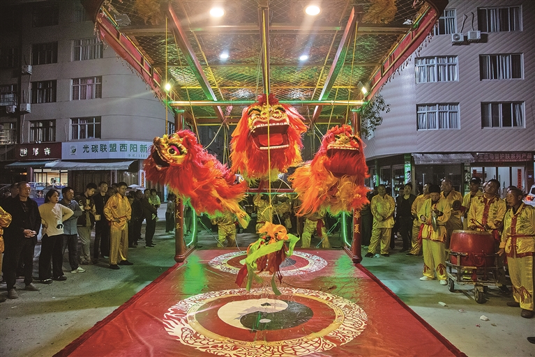 三头线狮在响亮动听的“将鼓令”西皮狮鼓伴奏下,犹如活灵活现的生灵,翩翩起舞。线狮表演者们凭借精湛的技艺,通过操纵线狮全身关节的绳索,使得台前近20公斤重的线狮,展现出蹲卧、上柱、钻穴、出洞、啃球等一系列高难度动作。2月21日,福鼎市管阳镇西阳村上演了一场精彩绝伦的太平线狮表演。 村民驻足观看演出 精彩的线狮表演,吸引众多村民驻足观看,有些还拿出手机录像拍照。“舞狮可以保佑平安,这个寓意很好。每年正月村里都会有舞狮表演,大人小孩都爱看。”村民叶道随高兴地说道。 线狮表演中的每个动作都蕴含着深刻的寓意,上柱代表步步高升,钻穴象征财源广进,出洞寓意去病除灾,登山和越岭分别表示勇攀高峰和平安顺遂,飞腾寓意飞黄腾达,抱球、啃球则象征团圆和幸福。这些富含寓意的动作,展示了线狮表演的独特魅力,更传递出人们对美好生活的向往。 线狮表演 据悉,西阳太平线狮又称抽狮,有单狮(雄)、双狮(夫妻)、三狮(母子)之分。线狮重20公斤,身长2米,胸围1.8米,头大0.6米,由竹架、布衣、塑料鬃毛制成。 具有浓厚地方特色的优秀民间文化线狮表演象征着吉祥如意,凝聚了艺人的智慧,蕴含“合作、团结、和谐”的文化内涵。表演者吴家齐表示,元宵节舞狮是西阳村重要习俗,狮子是吉祥的象征,通过舞狮驱邪辟邪、保佑平安,祈求好运和幸福,希望新的一年里能够风调雨顺、五谷丰登。 相传,西阳太平线狮创于明代,至今已传承至第十四代。相传明朝泰昌年间,当地暴发瘟疫,雾霾笼罩,瘴气弥漫。西阳吴氏祖先制作纸狮巡游后,雾霾消散,村中无人染病。此后,每年春节期间西阳都会进行线狮表演,以祈求一年平安。(闽东日报 邱明翔 毛显局 文/图) |