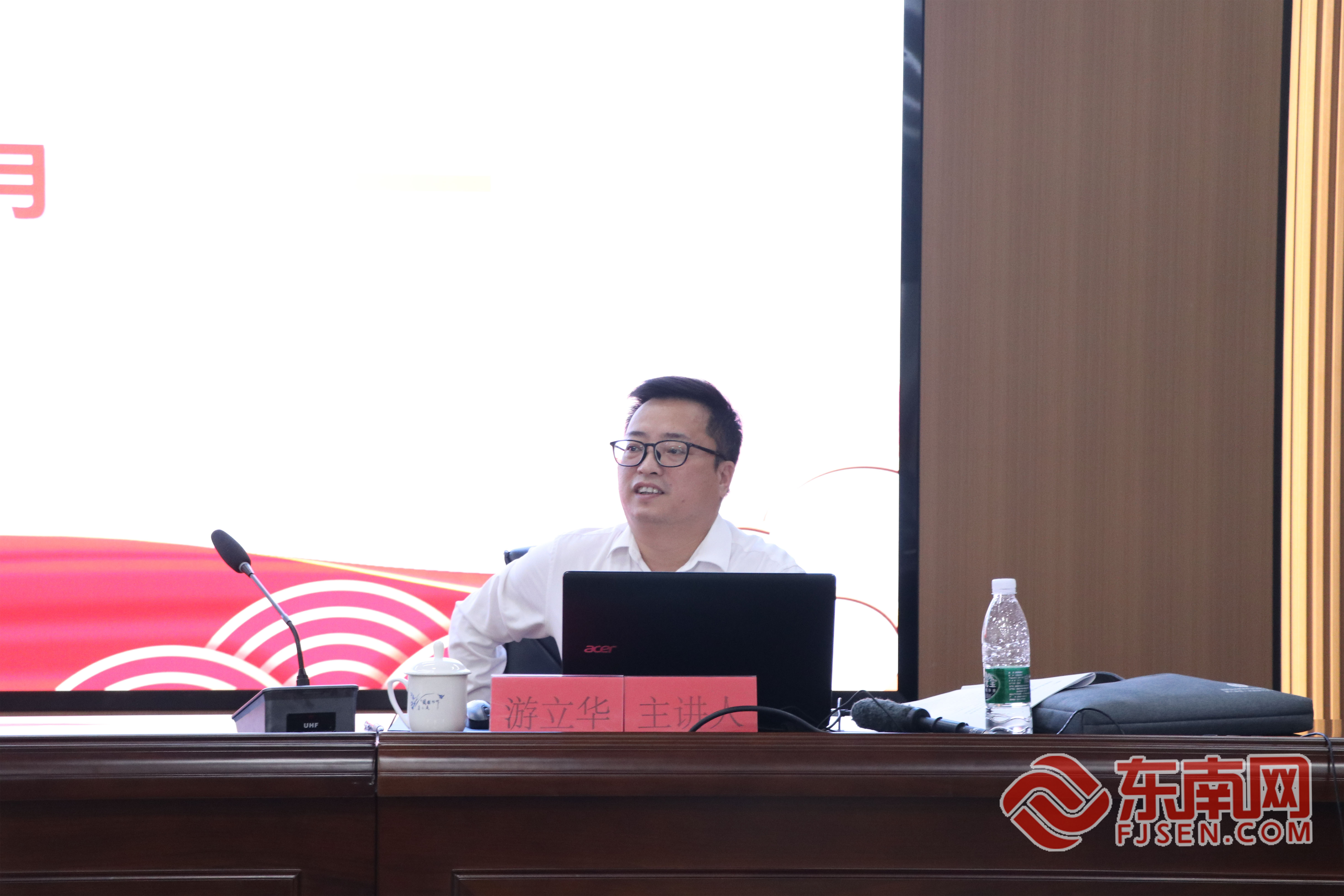 福建省志愿者协会副秘书长游立华。东南网记者 陈玲汇 摄 游立华以《深化质效意识 推进提质培优》为题,从实施提质培优工程的现实需求、全省提质培优工程的特色亮点、推进提质培优工程的重点难点、深化提质培优工程的努力方向等4个方面讲授了如何开展新时代文明实践提质培优工程。