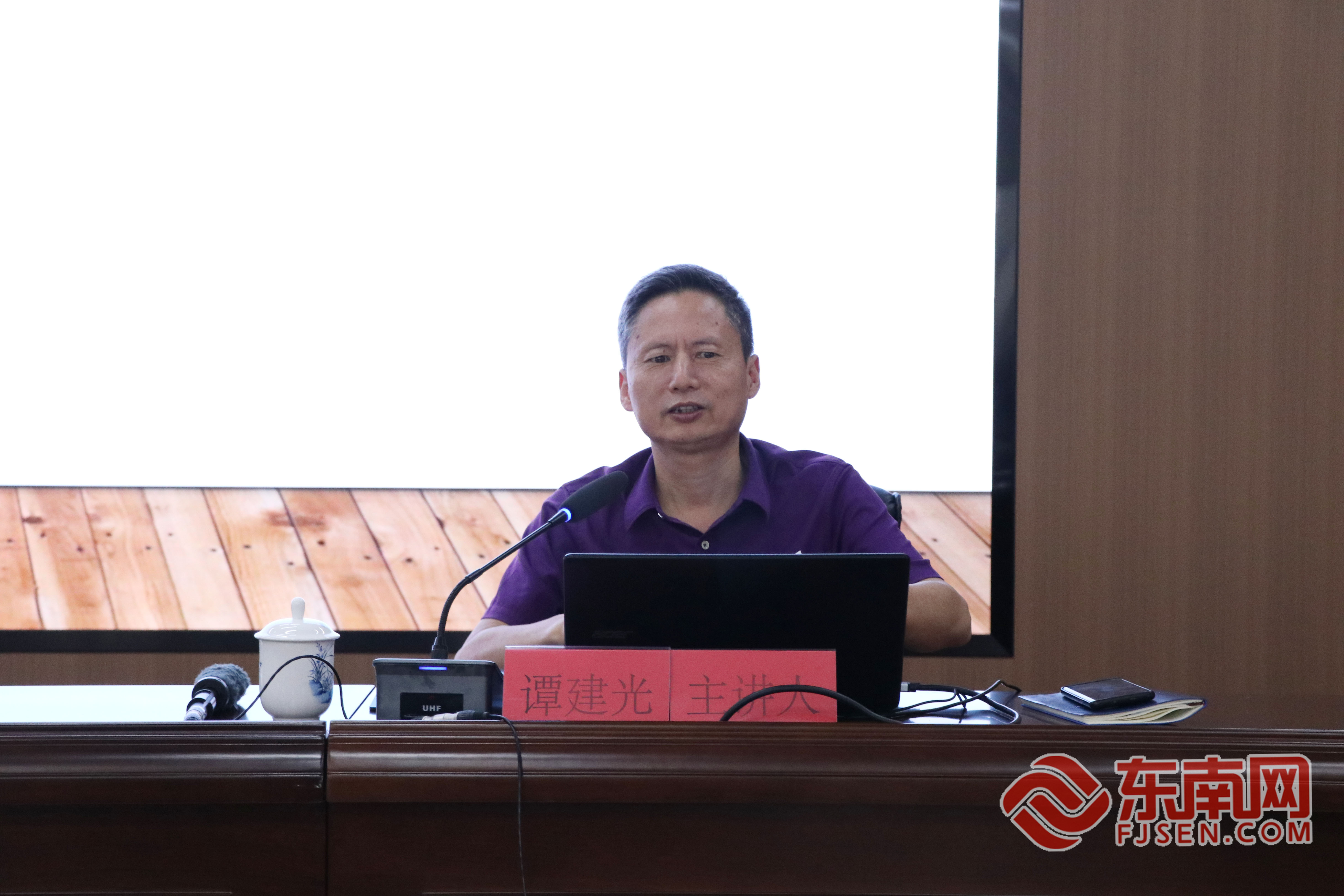 广东省团校(广东青年政治学院)教授谭建光。东南网记者 陈玲汇 摄 谭建光以《新时代文明实践发展的有效路径》为题,从新时代文明实践发展的“四有特色”、文明实践发展要破解“三个难题”、文明实践发展要把握“三大要素”、新时代文明实践要让人民群众“有感觉”等4个方面讲授了新时代文明实践发展的有效路径。