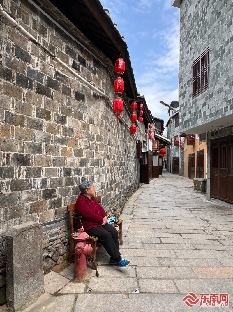 鹏程打卡点。东南网记者 潘月容 摄 作为福建省第二批省级历史文化街区,鹏程历史文化街区现存明清至民国时期建筑七十余幢,街巷格局延续了600余年的肌理形态,是宁德城区唯一完整保留古城风貌的“活态博物馆”。今年年初关帝庙路口改造投入60万元,重点实施历史建筑立面修复、文化墙营造、缆线入地及夜景照明工程。曾因电线交织形成的“空中蛛网”被彻底清除,青石板路下嵌入现代化排水系统,既根治了雨季积水难题,又完整保留明清街巷尺度。