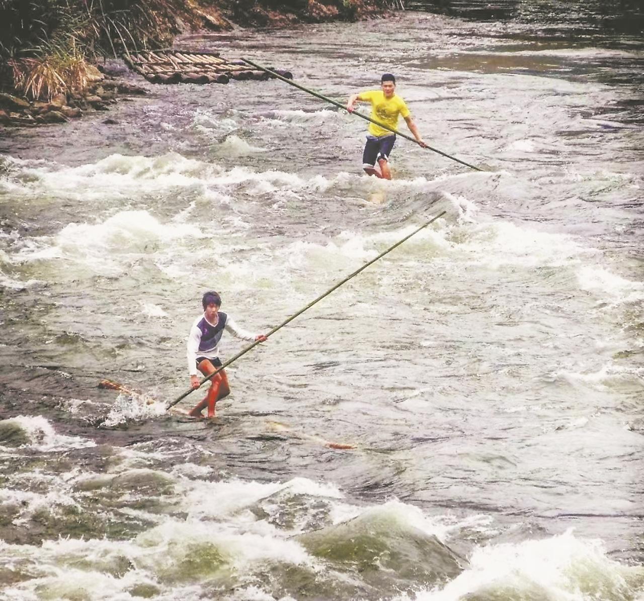 独木冲浪技艺传承者团队在洪口水域展示技艺 东南网8月12日讯(福建日报记者 庄然 通讯员 杨慈监 彭楚楚 文/图)夏日清晨,宁德霍童溪,水面浮着层冷蓝。 谢在军赤脚踏上青苔斑驳的码头,把6米长的松木推入水中,竹篙往岸边石墩一点,人已立在起伏的原木上。身后20余个身影次第入水,竹篙击水声惊飞白鹭——这是洪口乡独木冲浪非遗协会雷打不动的早课。