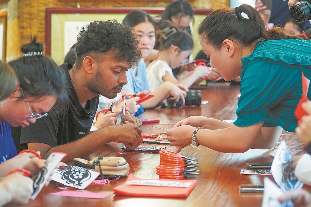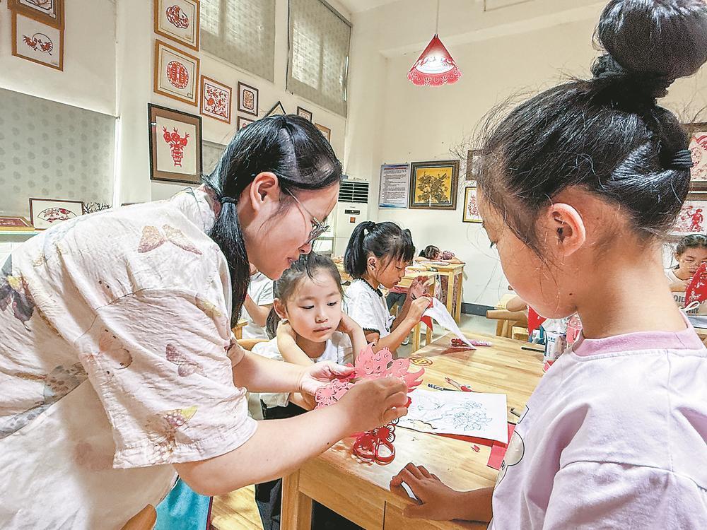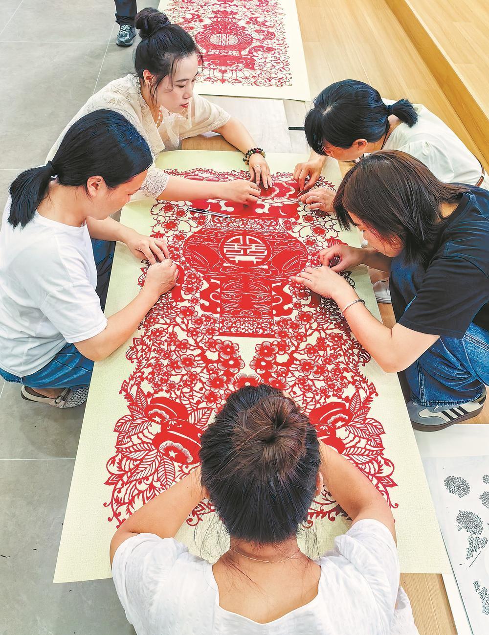 袁秀莹剪纸作品《百蝶图》 东南网10月1日讯(福建日报见习记者 周佩青 通讯员 陈丽彬 陆水琴 文/图) 核心提示 一张红纸,一把剪刀,千年剪纸技艺能够跨越山海,成为沟通世界的语言。 2008年,柘荣剪纸入选国家级非物质文化遗产;2009年,作为中国剪纸代表,其被列入联合国教科文组织人类非物质文化遗产代表作名录。 近年来,“中国民间文化艺术之乡”柘荣创下多个全国之先:出台首个专为剪纸发展制定的政策文件;揭牌首个剪纸博士工作室……柘荣剪纸以其独特的地域风格和深厚的文化底蕴,正经历着一场从“活下来”到“活得好”、从“守得住”到“走得远”的深刻蜕变。 从柘荣剪纸技艺的传承创新路径可以窥见,从乡土记忆到文化名片,从家庭作坊到国际舞台,剪纸这门指尖上的艺术,正在新时代的脉搏中焕发新生。 千年技艺 传承不息 柘荣,地处闽东北,山峦叠翠,民风淳朴,剪纸早已融入百姓生活的肌理。据史料记载,柘荣剪纸可追溯至唐代,兴盛于明清,至今已有千余年历史。它源于民间节庆、婚丧嫁娶、祭祀祈福等生活场景,是老百姓用红纸写下的“无声诗篇”,寄托着对美好生活的祈愿。 推开柳城东路袁秀莹奶奶的家,满目皆是剪纸:墙上舒展着《太姥神韵》,桌上静候着《福》字,连杯垫都刻着团花纹样。 98岁的袁奶奶,出身剪纸世家,8岁执剪,旁人一句“不错”,让她这一剪就是一辈子。如今,她是国家级非遗项目代表性传承人,亦是“中华巧女”。 清茶氤氲中,聊起剪纸往事,袁奶奶眼里愈发明亮。“柘荣剪纸始于帽花、鞋花、袖口的刺绣底样,比绣好的还好看。过年、结婚时贴在窗户柜子上,红纸一贴啊,喜气就到了。”虽已眼花手颤,但那双布满岁月痕迹的手依旧稳健——剪刀轻转,一只红蝴蝶便在掌心翩然诞生。 剪纸是中国最为流行的民间艺术之一,各地风格各异。与北方一些地区,如河北蔚县,以“刻”为主的技法不同,柘荣剪纸以剪刀为主,讲究“一把剪刀、一张红纸”的纯粹技艺。“我们剪的多是花鸟山水、龙凤呈祥等源于生活的题材,寓意吉祥,技法上以阳剪为主,阴阳结合,不打初稿,直接就剪,一气呵成。”她道出柘荣剪纸的精髓。与漳浦剪纸等幅面饱满不同,柘荣剪纸布局写意,“意在剪先”,更具灵动性和即兴的神韵,既显粗犷豪放,又蕴藏南方灵秀。 2008年,柘荣剪纸入选国家级非遗;2009年,作为中国剪纸代表,被列入联合国教科文组织人类非物质文化遗产代表作名录。 然而,随着现代化进程的加快,剪纸的实用功能逐渐弱化,传承面临断代危机。“剪纸不能只活在展馆里,更不能只留在老人的记忆中。”柘荣县文化馆馆长黄建辉说。 破局之道,在于“活起来”。2022年,《关于实施柘荣剪纸创造性转化和创新性发展工程的意见》出台——这是全国首个专为剪纸技艺发展量身打造的系统性政策文件,标志着柘荣剪纸进入全面保护与创新发展并重的新阶段。 其中,“剪纸六进”成为关键抓手:进校园、进乡村、进社区、进机关、进景区、进网络。今年5月,县机关幼儿园挂牌“剪纸传承基地”,成为这项非遗项目最年轻的传承阵地。“种下一颗火种,将来必成燎原之势。”黄建辉满怀期待。 在柘荣县青少年学生校外活动中心内,打开“剪纸AI传承人”小程序,输入“生肖兔”三个字,屏幕瞬间生成底图,孩子们屏息凝神,指尖翻飞间,红纸片片纷落,一只只活灵活现的兔子跃然纸上……千年剪纸技艺正以这般新潮的方式在孩子们的心中扎根。 如今,每到暑假和周末,柘荣县文化馆的剪纸公益课期期爆满。只见教室墙上贴满孩子们的稚嫩又充满灵气的作品,市级非遗代表性传承人陈水云正在指导8岁的陈奕诺剪红喜字。小奕诺学了两周,已能剪出带小鸟和花朵图案的喜字。“我喜欢剪纸,像会魔术!”她举着作品,笑容灿烂。 柘荣剪纸协会会长金素清介绍道:“现在不只是‘六进’,我们还组织进军营、进企业等,由传承人现场手把手教学,每次活动都非常受欢迎,全县学习剪纸、传承剪纸的氛围浓厚。” 传统上,柘荣剪纸依靠“口传心授”的师徒模式传承。如今,政府和民间组织共同搭建了剪纸传习所、技能大师工作室等平台,实施“导师帮带”制度,由袁秀莹、孔春霞等大师定期授课,系统化培养新人,形成了“老一辈大师引领、中生代骨干支撑、青年力量创新”的代际传承格局。 以陈水云等“90后”传承人为代表的年轻一代,不仅继承了传统技艺,更将现代审美融入创作。她们学习动漫、油画、装饰画等艺术形式,创作出《闽福》等兼具传统韵味与现代设计感的作品,让剪纸“潮”起来,吸引了更多年轻人关注。 一纸兴村 博士入乡 驱车从柘荣县城出发,不到15分钟,一把巨型剪刀雕塑赫然立于岩石之上,红底白字写着“靴岭尾”。走进这个曾经默默无闻的村子,仿佛步入露天剪纸艺术馆:民居外墙上是巨型剪纸图案,路边灯箱采用镂空剪纸设计,剪纸体验馆内,游客聚精会神剪刻。 5年前,靴岭尾村还是一个“支部弱、‘村财’少、群众散”的软弱涣散村,村集体收入仅有7.32万元。如今,它已蜕变为剪纸产业标杆,获评“中国美丽休闲乡村”和“省级乡村振兴示范村”,村集体收入达98.97万元,村民年人均可支配收入3.18万元。这一切,始于一把剪刀、一张红纸。 “我们立足400多年剪纸底蕴,把非遗变成村庄核心符号,剪纸成了我们的支柱产业。”靴岭尾村党支部书