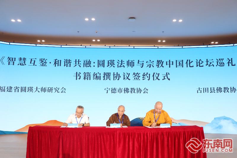 东南网10月13日讯(本网记者 叶伏国)10月13日,以“智慧互鉴·和谐共融”为主题的第三届圆瑛法师与宗教中国化交流活动在宁德市古田县举办。来自海峡两岸的佛教界代表、专家学者及各界人士齐聚圆瑛法师故里,开展文化交流,增进文明互鉴。 第三届圆瑛法师与宗教中国化交流活动在福建古田举办。东南网记者 叶伏国 摄 本届交流活动由福建省佛教协会主办,宁德市佛教协会、古田县佛教协会、古田极乐寺承办,旨在深度挖掘圆瑛文化时代价值,传承圆瑛法师的慈悲利生与爱国精神,推动两岸交流互鉴与融合发展,让圆瑛文化在交流中焕发新的活力。 古田县委书记许锋表示,古田作为圆瑛故里与圆瑛文化发源地,必将深挖圆瑛文化的时代价值,永志传承法师爱国精神,并以这份精神为纽带,深化两岸文化交流、扎实推进宗教中国化实践,让跨越时空的家国大义,为两岸融合发展、古田高质量前行凝聚力量。 福建省佛教协会代表世起法师说,圆瑛法师毕生致力于爱国护教、促进和平,全省佛教界要以圆瑛高僧风骨铸信仰根基,以清规戒律护法门清净,持续推进佛教中国化实践在福建走向深入。 宁德市政协副主席、一级巡视员刘国平表示,希望与会专家学者、高僧大德积极建言献策,为圆瑛精神与宗教中国化探索更多有意义的实践路径,推动圆瑛文化名片在新时代的广泛传播。 现场举行相关协议签约仪式。 东南网记者 叶伏国 摄 交流活动期间,宁德市、古田县佛教协会与福建省圆瑛大师研究会共同签署《智慧互鉴・和谐共融:圆瑛法师与宗教中国化论坛巡礼》书籍编撰协议;圆瑛文教基金会与中国社会科学院世界宗教研究所杂志社签订圆瑛文化研究框架协议。 现场举行相关协议签约仪式。东南网记者 叶伏国 摄 此外,活动期间来自海峡两岸的高僧大德与专家学者先后作了交流发言。大家一致认为,两岸佛教文化同根同源、一脉相承,圆瑛法师的佛学思想、爱国精神以及推动佛教中国化的实践探索,为两岸佛教携手前行、增进文化认同提供了重要纽带。 圆瑛法师是中国近现代著名爱国高僧、佛教泰斗。抗战时期,他积极投身救国行动,组织僧侣救护队支援前线,设立难民收容所救助百姓,并赴南洋发起“一元钱救国难运动”,动员海外侨胞募集善款支援祖国抗战,用“出世不离入世”的实际行动诠释了佛教徒的家国大义。 作为圆瑛法师的出生地,近年来古田县始终围绕传承弘扬圆瑛文化主旨,先后完成圆瑛故居、纪念堂等基础设施修缮与展陈提升,建成首个“圆瑛文化”主题楞严书院,举办书画展,编纂专题文献,拍摄影视作品,不断丰富文化传播载体。 主办方表示,此次交流活动恰逢中国人民抗日战争暨世界反法西斯战争胜利80周年,既是对圆瑛法师抗日功绩的深切缅怀,更是对其“当具爱国之心肠,时切爱民之观念”理念的当代践行。古田县将以此次交流活动为契机,进一步擦亮“圆瑛故里”文化名片,深化与两岸佛教界的学术交流与文化合作,让圆瑛法师的爱国精神与和谐理念跨越时空、代代相传,为推进宗教中国化、促进两岸融合发展贡献古田力量。 |