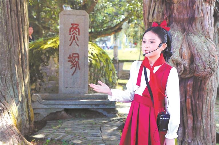图为参赛选手向大家介绍鸳鸯树的传说和鱼祭文化 10月16日至17日,周宁县举行2025年“童心向党”红领巾小导游讲解比赛,来自周宁县6所小学的选手们化身文化使者,用童声讲述鲤鱼溪古村故事。 据了解,“红领巾小导游”起源于周宁县浦源中心小学,自1994年建队至今,一代代小导游佩戴红领巾,先后接待过国家、省、市级领导及众多游客,多次被中央、省、市各级媒体报道。(闽东日报许凯凯 摄) |