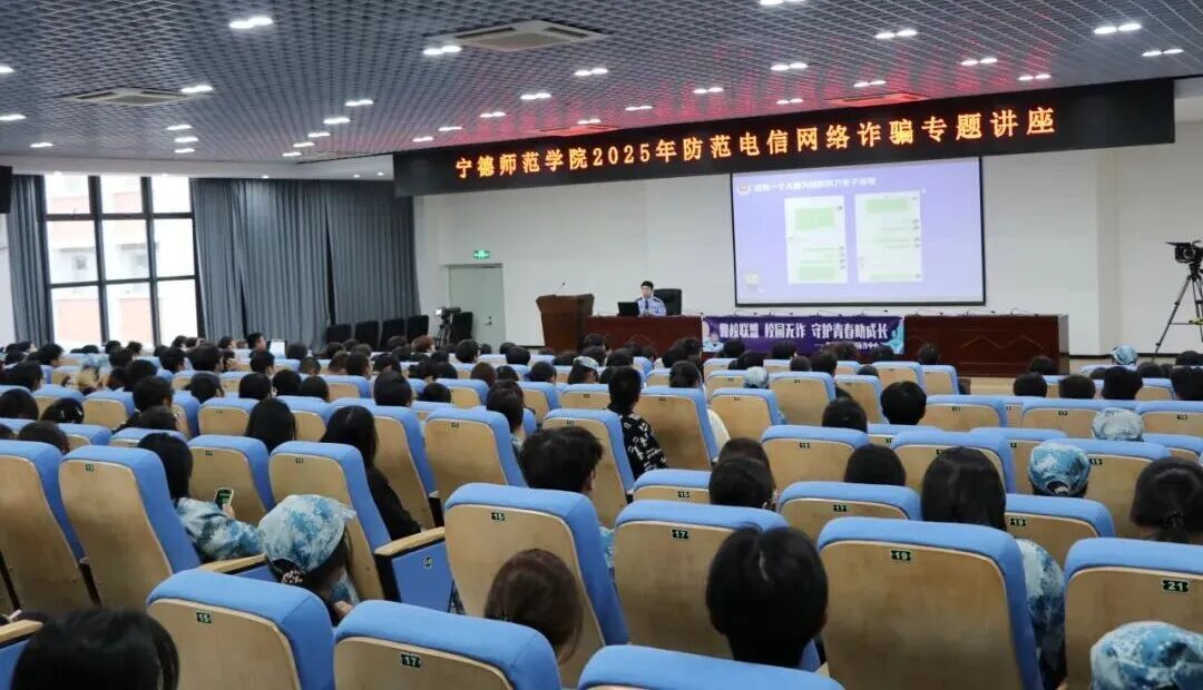 东南网10月22日讯(通讯员 吴晓烨)为切实提升师生安全防范意识和自我保护能力,有效遏制涉校电信网络诈骗、毒品犯罪及交通事故发生,筑牢校园安全屏障,10月21日下午,东侨公安分局反诈中心联合宁德市公安局刑侦支队、禁毒支队、交警支队,走进宁德师范学院,为2025级全体新生送上一堂内容详实、形式新颖的安全宣传教育“必修课”。