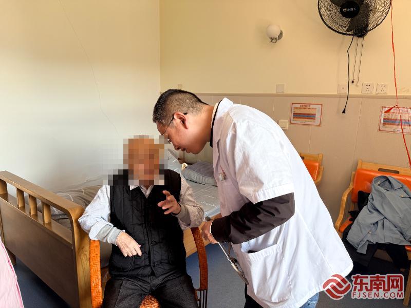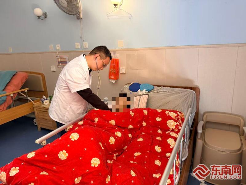 郑日耀为温奶奶做健康检查。东南网记者 周涛 摄 离开夏奶奶家,郑日耀又匆匆赶往辖区内一所养老院,那里还有三位他负责的“家庭病床”签约老人。在养老院,80多岁的温奶奶因长期插导尿管导致泌尿道感染,出现“紫色尿液综合征”。郑日耀团队承担起了定期更换导管、膀胱冲洗、监测感染指标等职责。养老院护士赵宝芳说:“这里的老人都特别信赖郑医生。有他在,我们日常健康监测也更有底气,能形成良好的照护互补。”