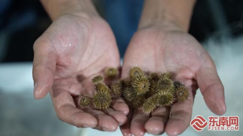 察看海胆苗。霞浦县融媒体中心 供图 海胆属冷水性品种,过去主要集中在我国北方沿海养殖。随着耐高温品种的引进及养殖技术的日趋成熟,海胆养殖正逐步向南方拓展。而福建沿海凭借清澈的水质、丰富的藻类资源及通畅的潮流通,为海胆生长提供了理想的自然条件。