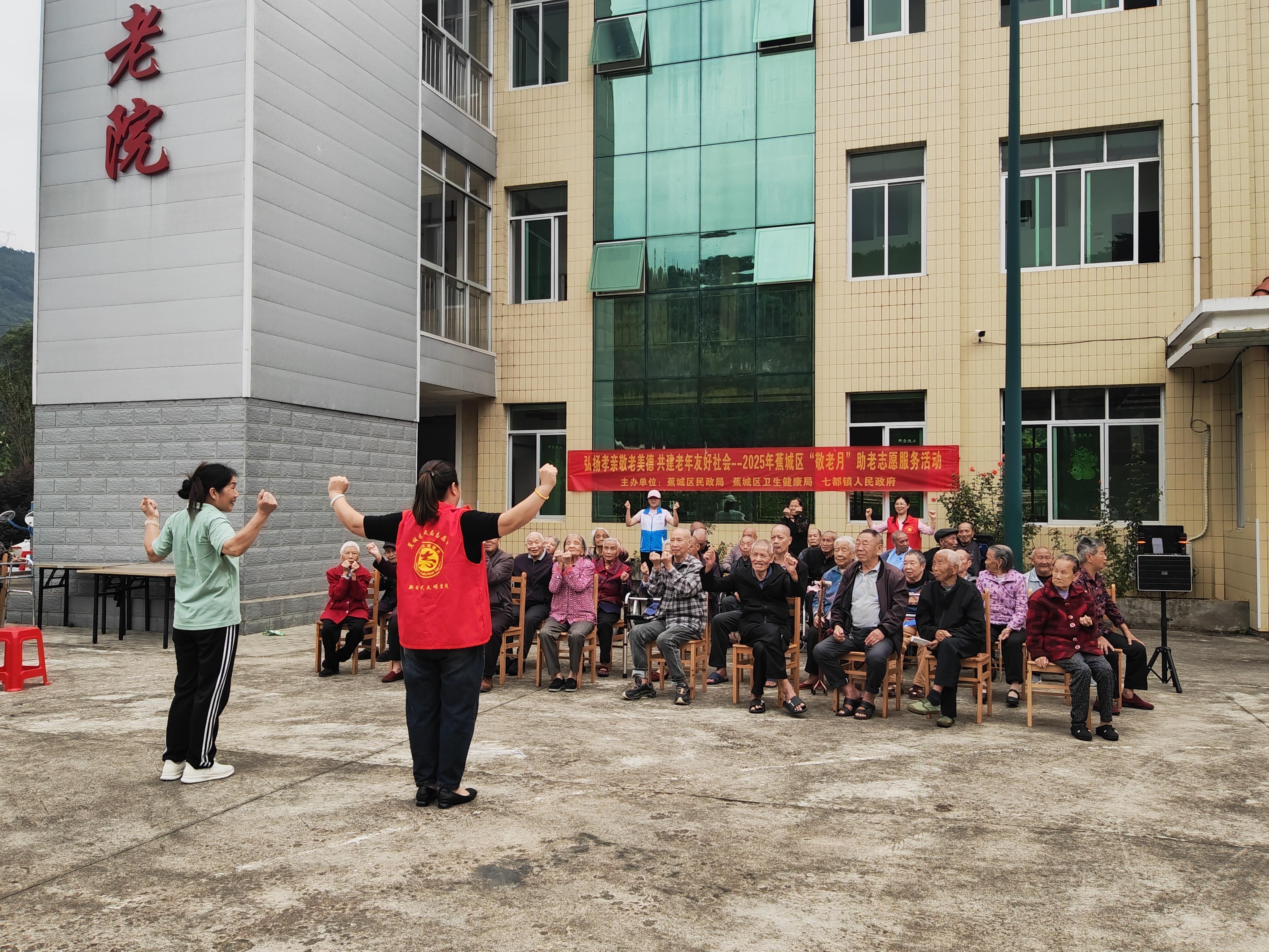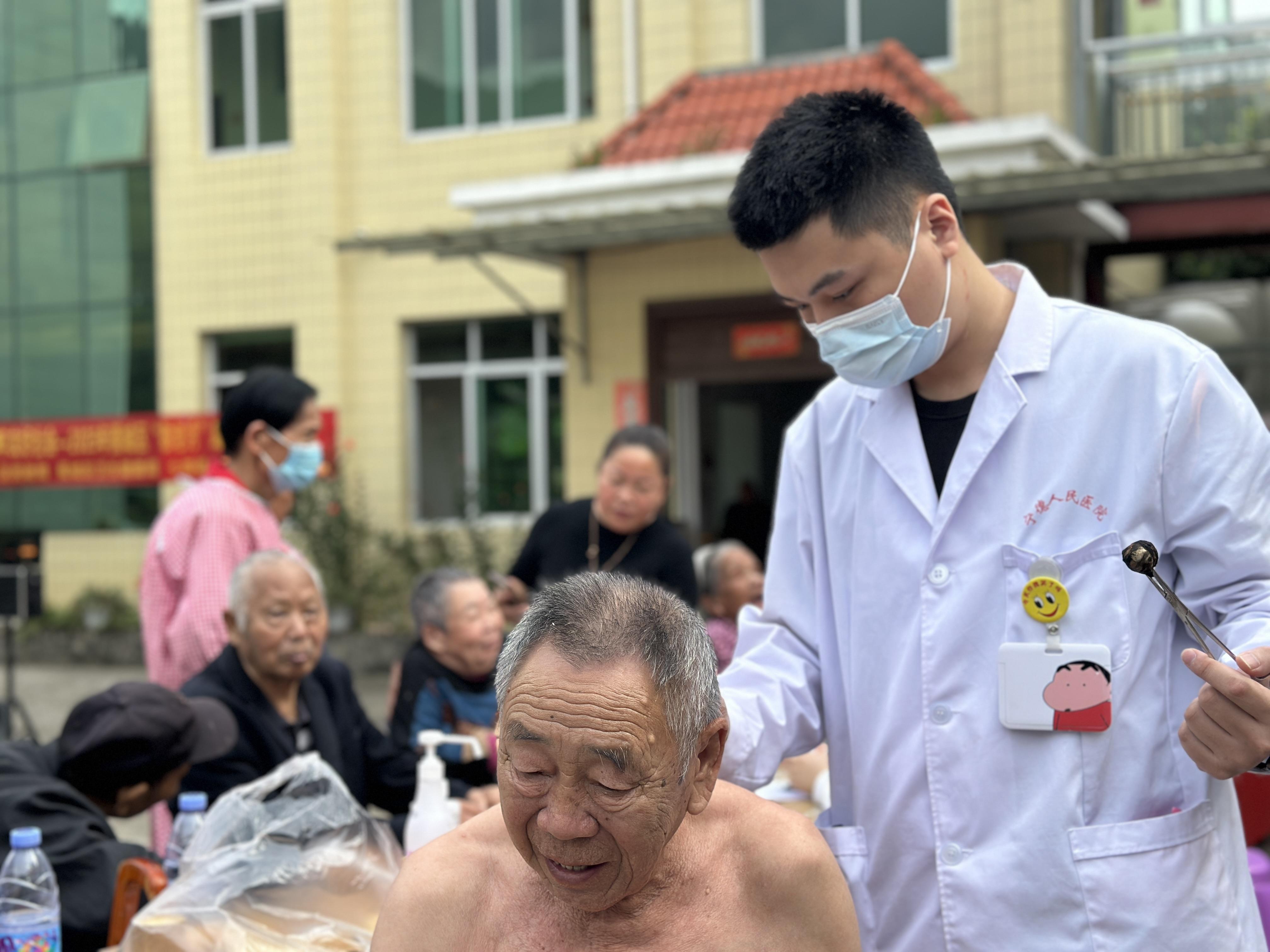 志愿者带领老人做健康操 蕉城区民政局供图 医疗服务方面,宁德人民医院的医护人员针对老年人常见疾病,提供了针对性的义诊服务,细致地为老人们检查身体、解答疑问,并免费发放常用药品;七都卫生院的工作人员则忙着为老人们测量血压、血糖,提供基本公共卫生服务,同时发放健康宣传品,将健康关怀落到实处。