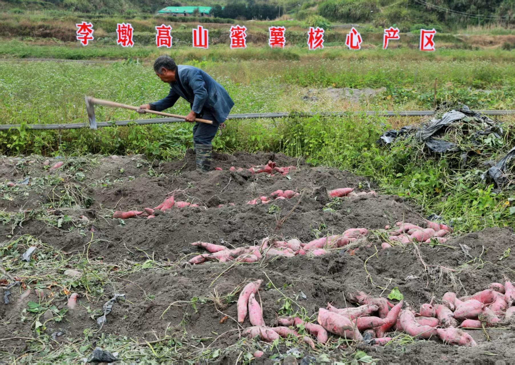 图为工人正人工采收蜜薯 汤文娟 摄 全链条发展的关键,在于疏通销售渠道的“主动脉”。露香源农业科技有限公司以“线上+线下”双轨模式为引擎,实现产品与市场的精准对接,果型达标的鲜薯直供福州、厦门核心市场,品相稍逊的则深加工为蜜薯干、地瓜粉、金丝粉扣等,借力电商直播与商超网络送达消费者。这一模式不仅畅通了蜜薯“出村进城”的通道,更让“周宁高山蜜薯”的品牌声量持续攀升。“如今公司线上日销可达六七百单,叠加深加工收益,每亩净利润已稳定在2000元左右。”福建露香源农业科技有限公司负责人陈芳介绍道。