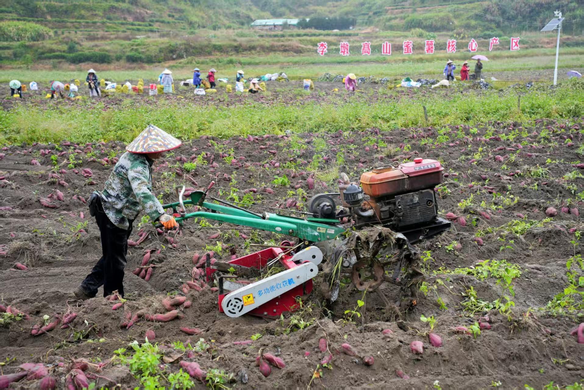 图为工人正操作挖薯机穿梭垄间采收蜜薯 陈映旋 摄 与此同时,露香源农业致力于深耕“种植-加工-销售”全链条发展。从种植端入手,公司积极联动省农林大学、农业农村局及科技特派员,精准结合周宁的生态禀赋与土壤特质。在引入“济薯303、榕薯910”等适配性强的优良品种的同时,还借助“田间学校”开展标准化栽培与生态管理技术培训,系统性挖掘蜜薯种植在品种迭代、品质升级、效益提升上的多元潜力。如今,周宁高山蜜薯亩产稳定在4000至5000斤,品质对标“全国名特优新农产品”标准,为产业后续发展打下坚实基础。