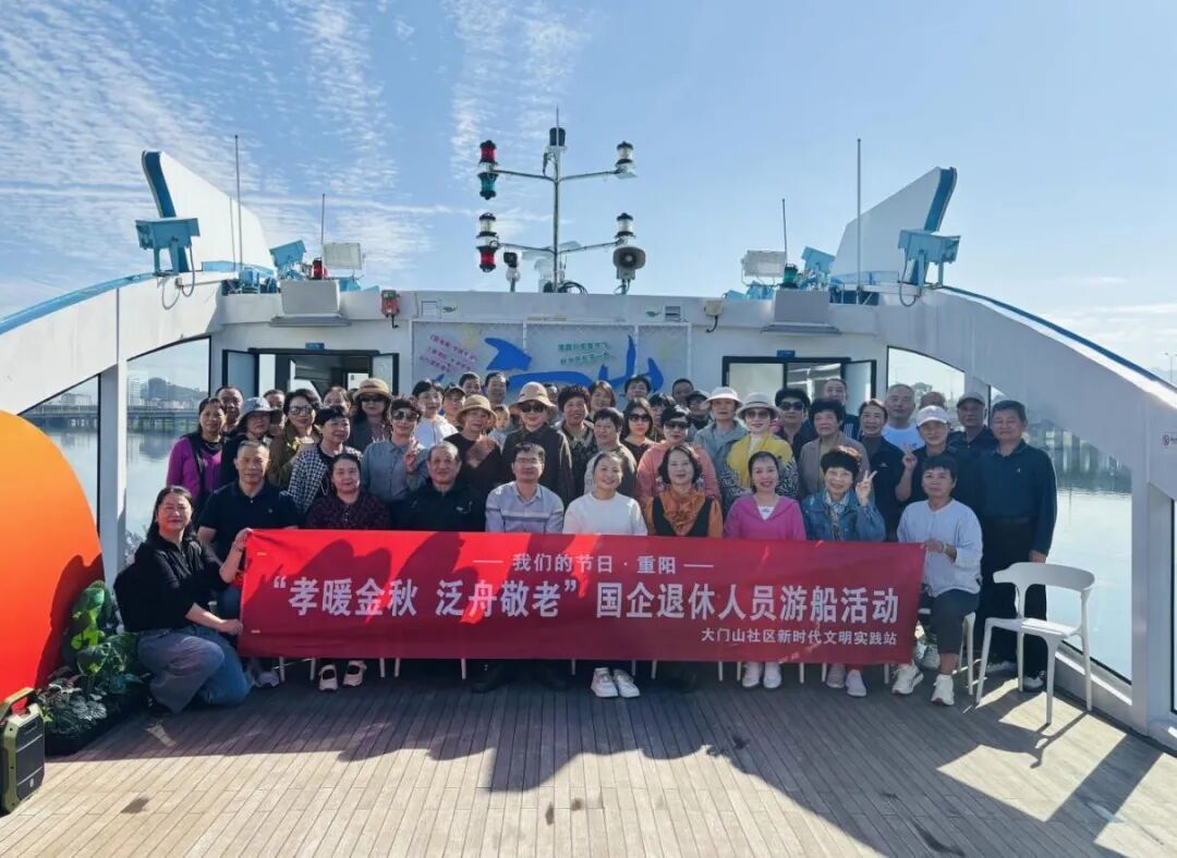 大门山社区 10月29日,大门山社区举办“孝暖金秋·泛舟敬老”东湖游船活动,组织辖区国企退休人员共度重阳。游船航行中,老人们沿湖欣赏秋色,不时举起手机拍照留念,船舱内充满欢声笑语。几位老人主动唱起经典歌曲,引来全船掌声与合唱,现场气氛热烈。航行结束后,老人们有序领取慰问品,热切交流着游船时的欢乐时刻。