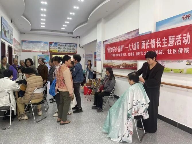 华侨新村社区 10月29日,华侨新村社区开展“我们的节日・重阳”主题公益活动。在义剪区域,理发师耐心询问每位老人的发型偏好,一边修剪一边拉家常;在微循环与气血通检测摊位前,老人们有序排队,认真聆听志愿者的健康提醒;随后,老人们边吃着长寿面边闲聊,现场笑声不断。活动还联合共建单位走访慰问了5户困难老人,为他们送去了节日的关怀与温暖。