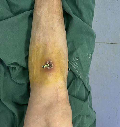 确定手术方案后,团队为邱大爷实施右小腿胫骨侧方骨膜牵张术。术后进入关键的牵张期,在专业指导下,每日三次精准调节螺钉,实现每日一圈的骨膜牵开。