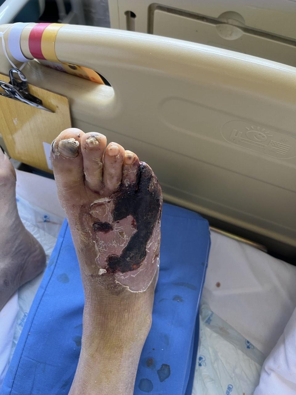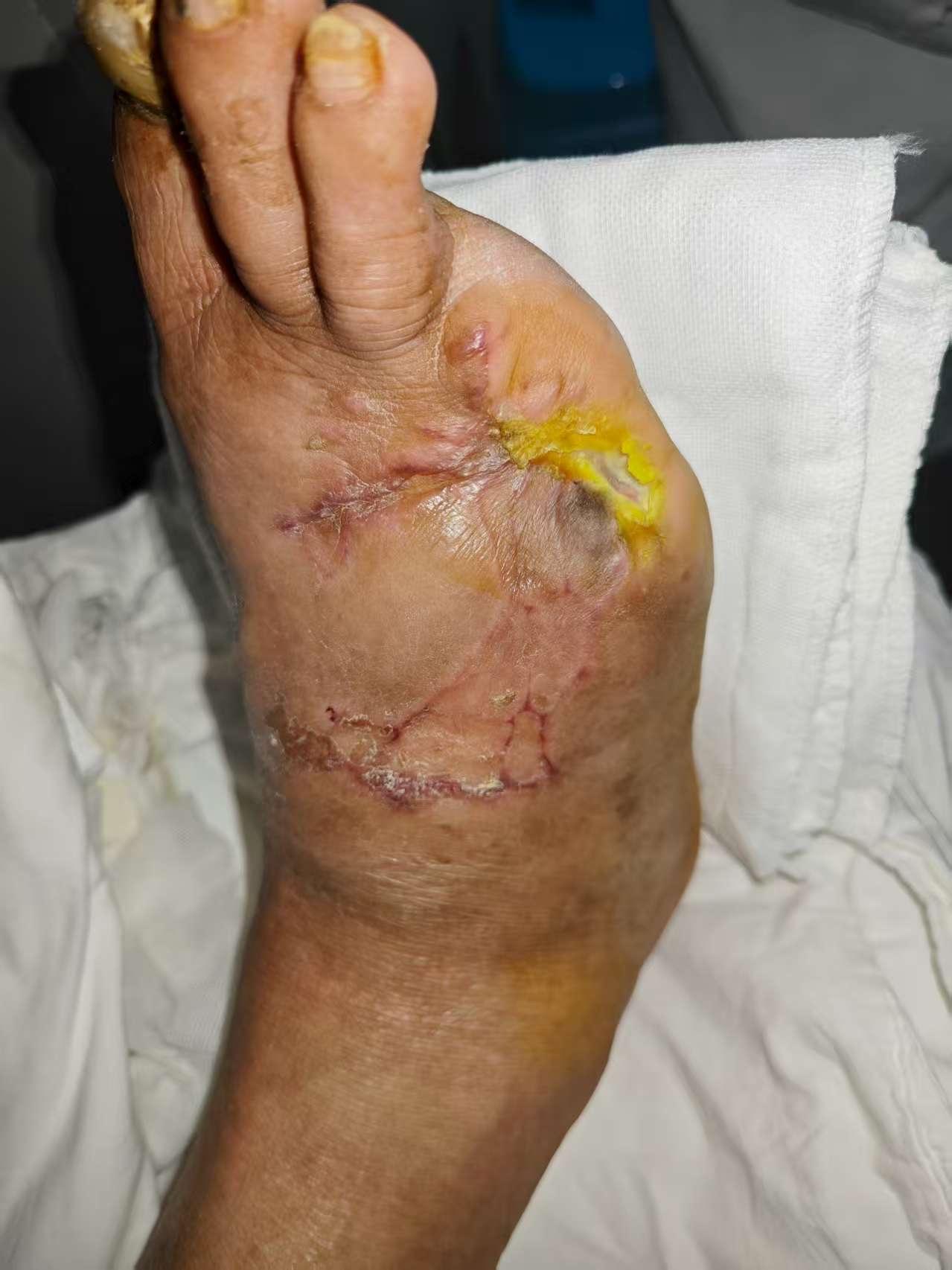 入院时,邱大爷右足皮肤紫绀、冰凉,足趾部分区域已发黑坏死,属肢体坏死前兆。按照常规治疗方案,极可能需进行高位截肢。