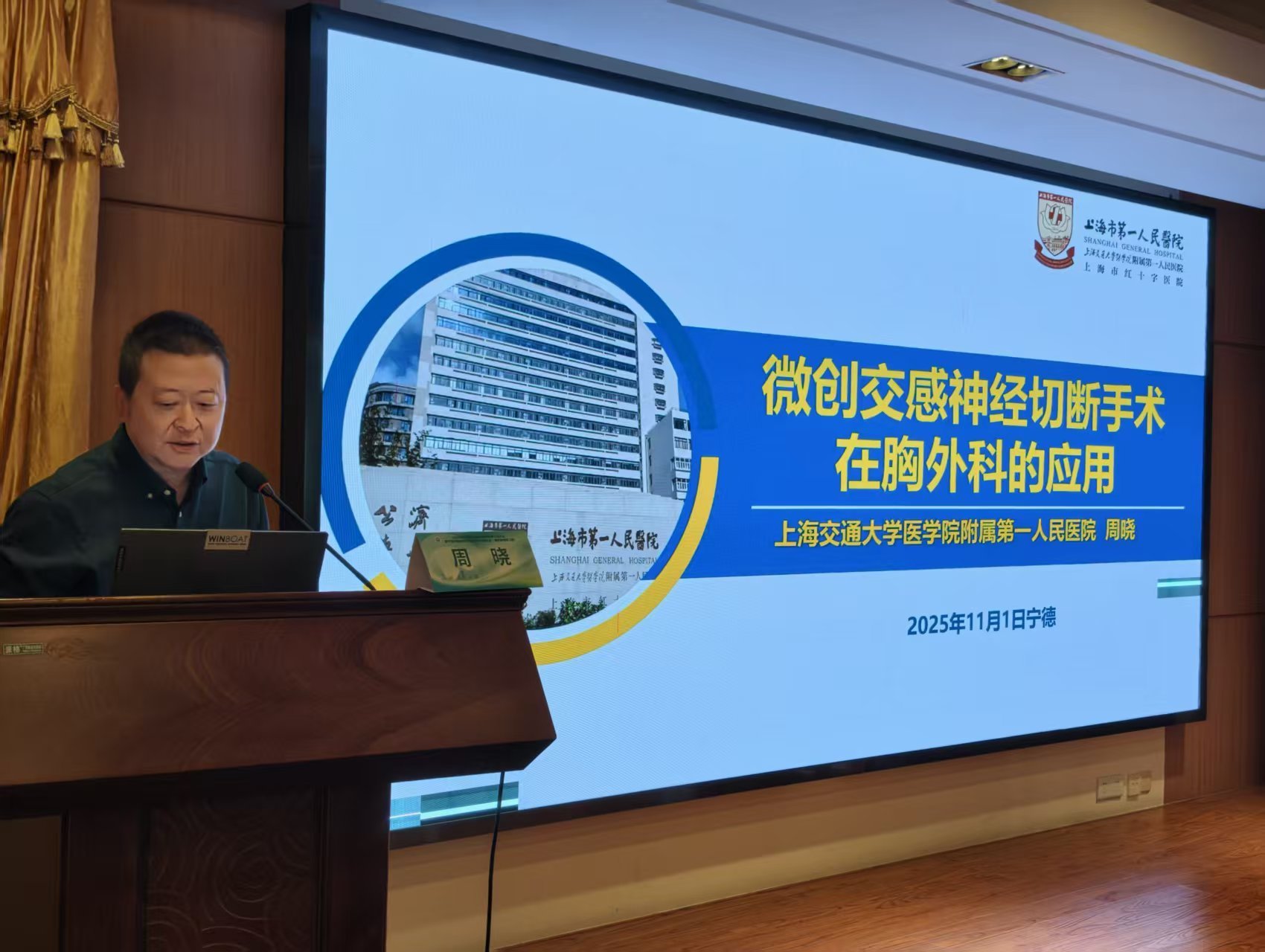 东南网11月4日讯(通讯员 陈辉)10月31日至11月1日,2025年宁德市医学会胸外科分会年会、宁德市胸外科专业质控中心培训会暨胸部肿瘤新进展学习班在宁德市医院召开。来自宁德和上海的近百名胸部肿瘤领域的专家学者、临床医护及科研人员齐聚一堂,共同围绕胸部肿瘤临床实践、手术技术创新与基层发展等主题展开深入交流与探讨。宁德市医院执行院长吴光辉,上海市第一人民医院宁德医院常驻专家、胸心外科主任医师黄威出席开幕式并致辞。宁德市医院副院长、宁德市医学会胸外科分会主任委员何昌进主持开幕式。