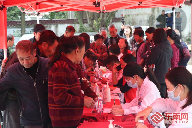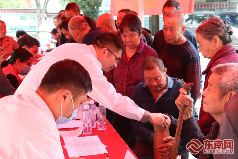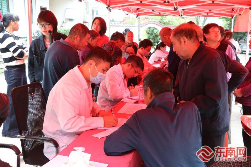 义诊现场。东南网记者 周涛 摄 “老人家,您的血压控制得还可以,平时要记得按时服药,饮食少盐少糖。”义诊中,专家团队不仅为村民提供常见病、慢性病的初步筛查、诊断和一般治疗,还开展健康指导和医学知识普及。