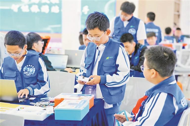 学生全神贯注投入比赛 近日,福鼎市成功举办首届创客嘉年华暨2025年中小学人工智能竞赛,全市中小学师生齐聚一堂,以创意与热情展开一场跨学科融合应用的科技较量。 赛事启动后,师生们迅速投入创作。在激光切割机、3D打印机等设备的辅助下,他们灵活运用行空板、ArduinoUNO、赢星派等主板,搭配各类传感器与人工智能模块,有条不紊地搭建出一个个智能作品。一旁的算法编程赛场上,学生凝神屏息,指尖在键盘间跃动,展开一场无声的“脑力角逐”。 “我们希望做好学生人工智能创新路上的引路人,让他们真正体验到科技创新的乐趣,培养更多具备创新精神和实践能力的人才。”参赛教师陈鹏说。 福鼎市实验小学学生陈心宇则表示:“比赛中四人协作,比课堂任务更考验配合。创新不是‘炫技’,关键要‘有用’,我也更敢于思考科技如何让生活更便利。” 本次活动以“科创筑梦,智创未来”为主题,设学生组与教师组双赛道。学生组涵盖创意智造与算法编程,教师组则开展创意智造项目。创意智造赛道设置“任务创作+路演答辩”全流程环节,优秀团队不仅可晋级宁德市级展示,其作品还有机会由学校申请国家专利,实现“创新有价值、成果能转化”。 福鼎市教育事业发展中心副主任易文表示,竞赛是福鼎市人工智能教育成果的集中检阅,也是践行“培养学生创新意识与实践能力”政策目标的具体举措。通过创意智造与算法编程的实战,推动科学教育从课堂走向实践,为培养人工智能创新人才筑牢基础。 赛场创意涌动,科创教育“扬帆”。近年来,福鼎市将人工智能教育作为推动基础教育改革的重要抓手,积极建设中小学人工智能基地,组建科技辅导员队伍,开设校本课程,推行项目式学习与跨学科整合,让学生在“做中学、创中悟”。 “以本次活动为契机,我们将进一步加大对人工智能教育的投入力度,完善人工智能教育体系,搭建更多展示交流和竞赛平台,推动人工智能教育在全市各中小学常态化、规范化开展,让人工智能创新之花在全市校园遍地绽放。”福鼎市教育局党组书记、局长林德说。(闽东日报记者 朱灵塬 通讯员 王婷婷 文/图) |