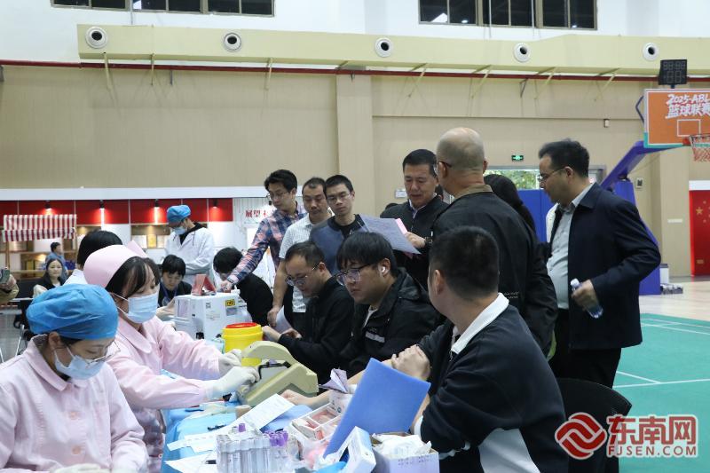 活动现场。东南网记者 潘月容 摄 宁德市人民政府副市长刘笃凡,市政府办副主任张连京,市红十字会党组书记、常务副会长丁伟武,市卫生健康委员会党组成员、副主任吴元东,市工信局副局长黄鹏耀,宁德新能源科技有限公司总经理左允文等领导嘉宾,以及蕉城区、东侨经济技术开发区相关部门负责人、锂电新能源产业链企业代表、志愿者共200余人出席活动。来自锂电产业链企业的员工、爱心志愿者们齐聚一堂,以挽袖献血、捐献造血干细胞样本的实际行动,传递生命暖流。