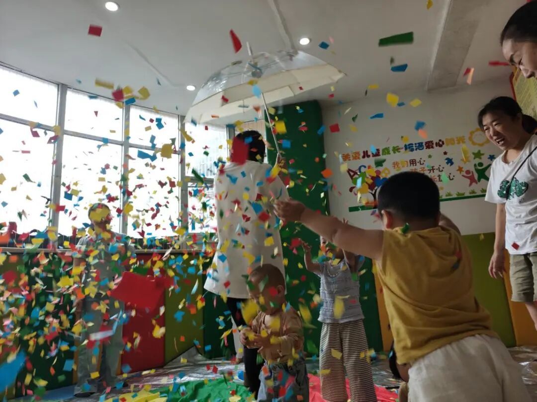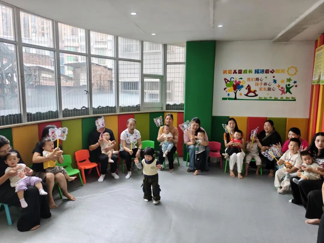 “加油!加油!”在城关社区亲子小屋的活动现场,“萌宝撕纸”比赛正在激烈进行,在老师们的引导下,孩子们将手中五颜六色的卡纸撕成越来越小的碎片,再跌跌撞撞地扔进透明雨伞里,家长们的加油声和欢笑声此起彼伏。而泗桥乡亲子课堂里,老师引导孩子们充分调动触觉、嗅觉、味觉和听觉感受瓜果蔬菜,最后再用形状各异的蔬菜进行涂鸦……