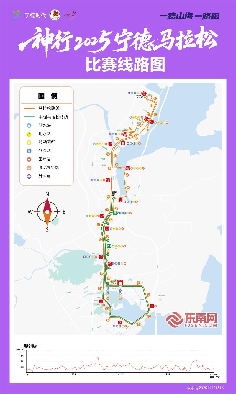 图为宁德马拉松赛事路线图 本届赛事在服务与体验上全面升级。交通出行方面,通过动态规划赛道封控,压缩封路时间,先封先解、快封快解;在赛道封控期间预留5个活口,并设置引导员,保障市民应急出行问题;首次针对市民通行在福宁路和闽东中路等路口,设置穿越点,方便市民通行;在金马路以及金马大桥实行单边双向通行等措施,提升市民交通便捷性。 选手出行及福利方面,开通赛事专线接驳并提供免费停车预约;跑者可享受宁德“文旅+商务”一站式套餐,跑宁马得黄鱼,不仅赛事包内含景区套票、马拉松消费券等好礼,周边酒店和美食餐厅还推出赛事专属折扣,更有知名景区免费游福利。 文旅融合成为本届赛事一大亮点。宁德市文旅局推出“参赛即免票”福利,所有选手可凭参赛凭证免费游览太姥山、白水洋·鸳鸯溪、九龙漈等全市4A级及以上景区首道门票。赛道沿线设置“景区加油站”,通过啦啦队、乐队表演等形式,为跑友加油助威,营造浓厚氛围。 值得一提的是,赛事期间还将举办精彩纷呈的配套活动。12月6日将举办宁德市足球联赛揭幕战,跑者可获赠球票,观赛大奖为上汽MG4新能源汽车;赛事期间还将同步开展美食嘉年华、农特产品展销、新能源车展等活动,商务局推出汽车购新补贴政策,最高补贴5000元,助力“体育+消费”深度融合。 奖项设置方面,本届马拉松优化项设置,其中全马冠军奖励1万元,奖项延申至前二十名,本地籍市民奖全马名次扩容至前三十名;增设破赛会记录奖,最高奖金可额外获得两万元。半马方面,冠军奖金为5000元,奖项延申至前二十名,本地籍市民奖半马名次扩容至前十名。 发布会上还发布了本届赛事的奖牌、LOGO、吉祥物、赛事服装等标志性元素。其中,赛事奖品设计独特,正面以“山海相依”线条配宁德大黄鱼,背面以传统剪纸造型宁德市花“桂花”,结合宁德时代字样,象征零碳科技与自然生态和谐共存;边缘海浪纹既贴合宁德地域属性,也象征赛道的挑战与风景。 目前,2900名马拉松赛事志愿者、230名医护人员已整装待发,赛事裁判团队由省市两级共同组成,全方位保障赛事安全有序进行。山海宁德将以更专业的组织、更暖心的服务、更丰富的体验,迎接八方跑友,共赴一场“一路山海一路跑”的激情盛会。 |