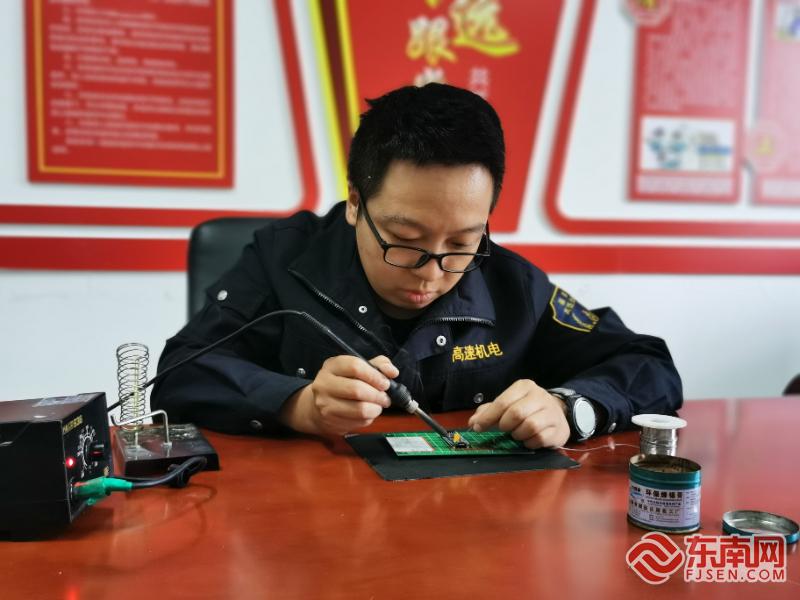 苏昱在远程重启设备主板焊接。宁德高速供图 初涉维护工作的第一年,一次凌晨的ETC门架工控机故障抢修任务,让苏昱记忆犹新。那天凌晨3点,他与同事驱车赶赴现场,仅按下重启键,设备便恢复正常。这次经历,让他意识到约三成的机电故障,其实只需“重启”即可解决,但高速公路沿线机电设备分布广、点位多,维护人员往往将大量时间耗在往返路途上,传统的维护模式被“距离壁垒”所束缚。 返岗后,苏昱萌生了一个大胆想法:能否让设备拥有一只“遥控器”?他摒弃高成本的工业模块方案,以“低成本、高适配”为目标,自主研发出由芯片模块、网络通信模块和继电器组成的简易远程控制系统。经过反复调试与试验,系统成功实现了远程重启功能,使故障处理时间从数小时缩短至数分钟,维护效率提升80%以上。 往日“千里奔袭”的抢修,到如今“一键回春”的从容,苏昱从“等待故障的救火队员”转变为“突破传统的创新者”,迈出“以创新维护道路”的关键一步。 凿地布线成旧景,无线传输提质效 在福寿段西浦隧道,车道指示标志控制线缆短路,导致指示灯整体失效。为查找故障点,苏昱和同事钻进仅半人高的电缆沟,在灰尘弥漫的狭窄空间内借助手电筒一点点排查,足足花了四个小时,才找出破损线缆,并完成修复。