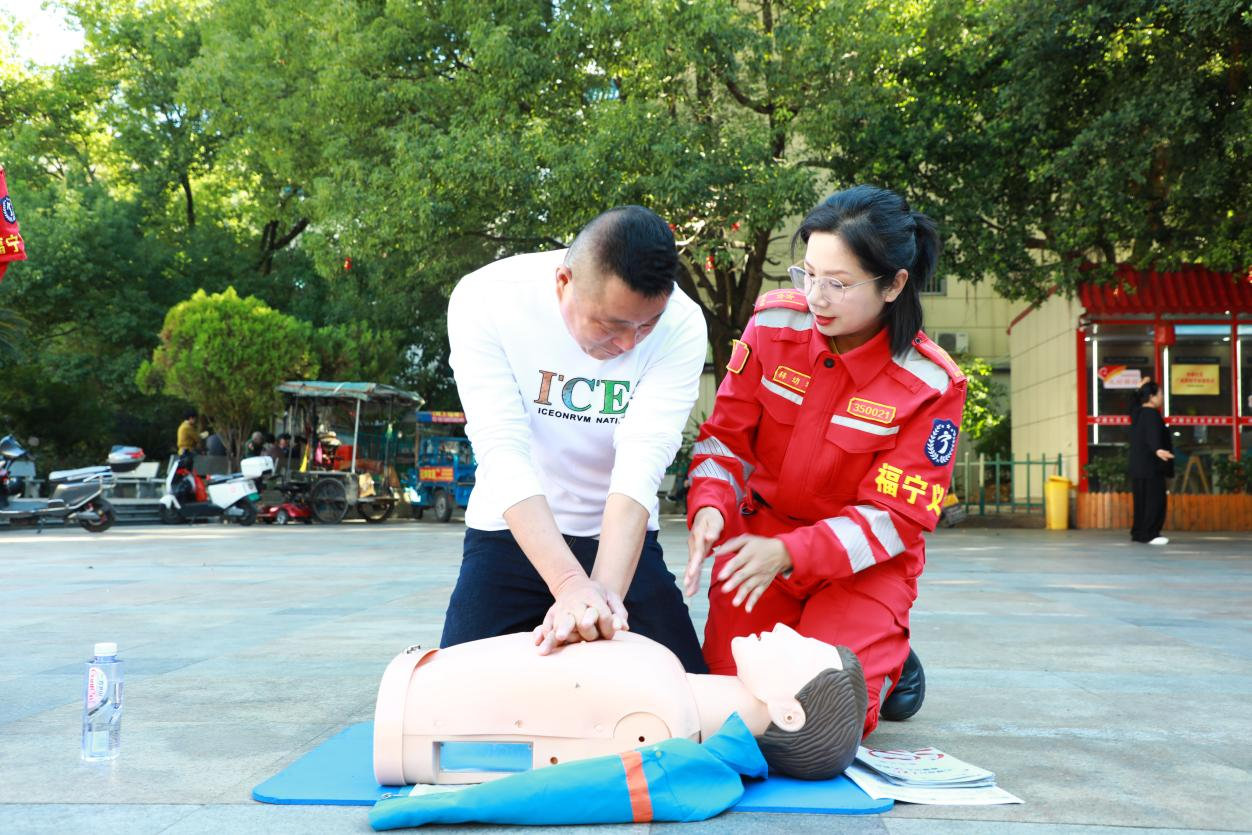活动现场,县医院医护团队分工明确、服务高效。基础健康筛查区前,医护人员为市民免费测量血压、血糖,针对筛查出的高血压、冠心病高危人群,精准提供常用治疗药物;健康咨询专区内,医生结合临床案例讲解心梗早期识别技巧,详细解读心梗早期识别要点与规范化治疗流程,同时向现场群众发放心梗防治手册、健康生活指导手册等资料;急救技能宣教区,福宁救援队队员通过人体模型演示心肺复苏操作,手把手指导市民掌握相关急救技能。