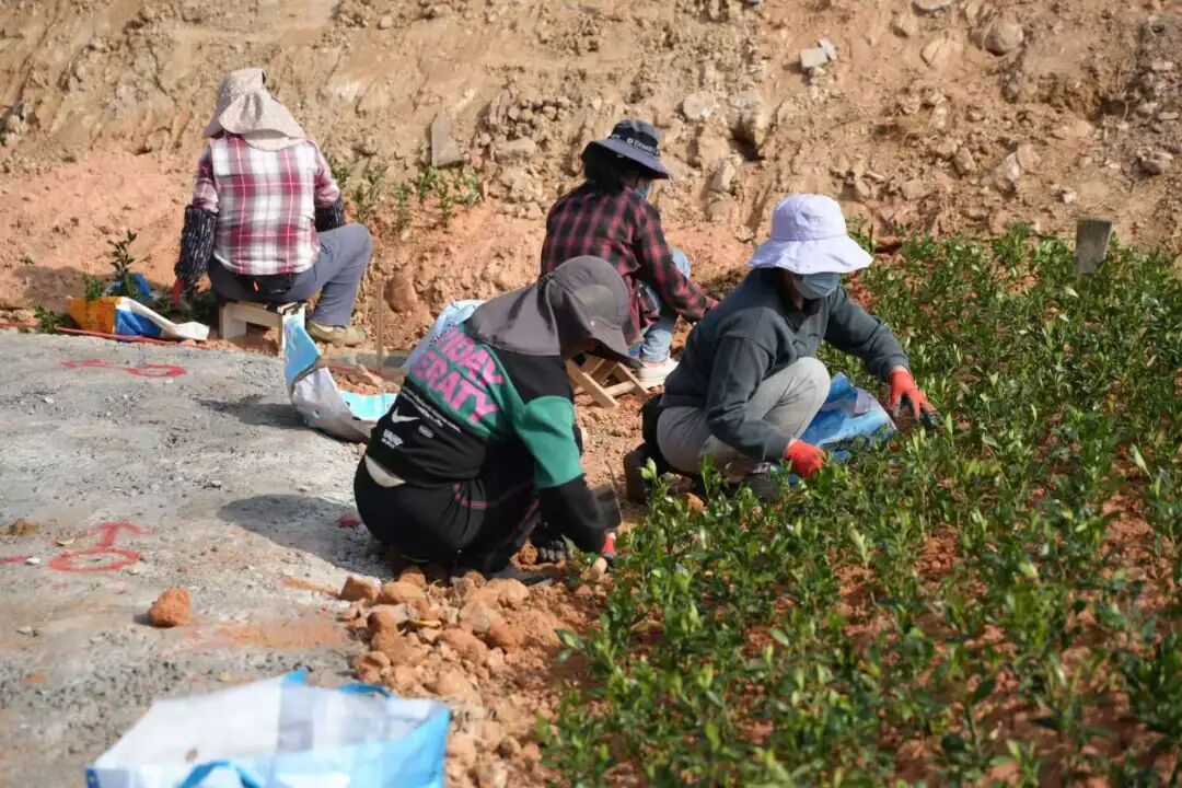 近日,蕉城区城南镇蚶岐村口袋公园项目建设加快推进,施工现场工人正有序开展盆栽种植、地面平整等作业,全力在村民家门口打造一片可游可憩的精致景观。
