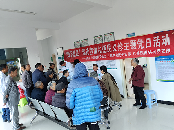 宣讲党的二十届四中全会精神现场 活动现场,区卫健局党组书记、局长、机关党委书记王致松带队深入基层一线,面向村“两委”成员及党员系统宣讲党的二十届四中全会精神,并以《“干实事、惠民生”——把准全会精神航向 筑牢基层廉政防线》为题讲授廉政教育党课。宣讲紧扣基层工作实际,用通俗语言解读政策核心要点,强化基层党员责任担当与廉政自律意识,推动党的创新理论在基层落地生根、入脑入心。与此同时,八都卫生院党员医务骨干在村内设置义诊点,为60余名村民免费提供血压测量、血糖检测服务,针对常见病、慢性病开展专业健康诊疗,现场发放常用药品及健康科普手册,切实提升村民健康防护能力;此外,医务人员还开展入户体检服务,为行动不便的村民送去贴心关怀和健康保障。
