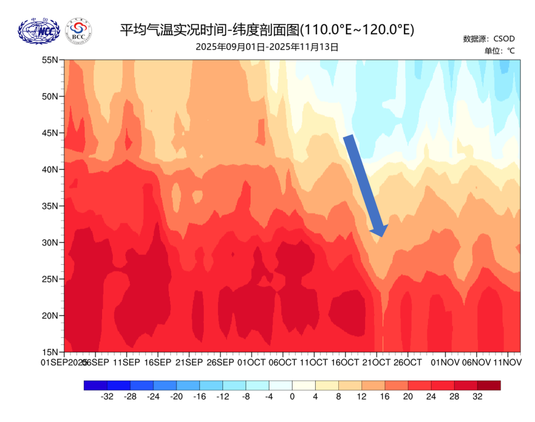 9月1日至11月13日南方地区平均气温时间变化图