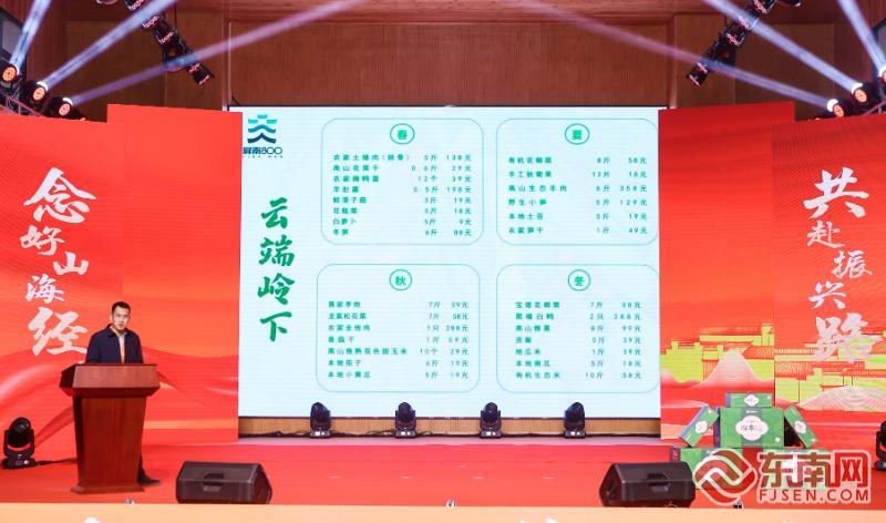 “云端岭下,四季菜篮”新品发布。主办方供图 岭下乡作为屏南特色乡镇,平均海拔高达1070米,被誉为“福建屋脊”下的生态宝地,得天独厚的高海拔气候与纯净环境,孕育出优质高山作物,成为屏南生态农业发展的重要承载地。 “这一碗高山蔬菜,藏着最纯粹的儿时味道,更藏着屏南的生态馈赠。”岭下乡乡长杨书勤带着满满诚意,推介了“云端岭下,四季菜篮”新品。他笑着细数岭下乡1070米海拔带来的天然优势,昼夜温差孕育的充足养分、纯净生态滋养的天然本味,让这份承载着家乡四季风味的菜篮,成为屏南生态农业的鲜活名片,也让在场嘉宾真切感受到了屏南特色产业的发展潜力。