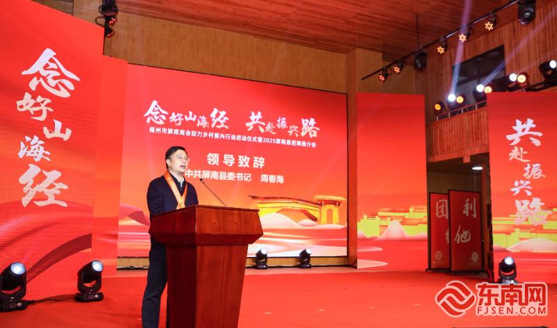 屏南县委书记周春海致辞。主办方供图 “如今的屏南,正以生态为底、产业为脉,走出一条特色振兴路。”屏南县委书记周春海的话语中满是底气。他细数着屏南近年来的发展硕果,从稳步增长的经济数据到火爆出圈的文旅IP,从提质增效的绿色工业到多点开花的高山农业,一幅生态与发展共兴的画卷徐徐展开。 同时,周春海向在场企业家发出诚挚邀约,期盼大家带着深情与远见回到家乡,在产业协作、乡村建设中寻找机遇,县委县政府也将以最实举措打造优良营商环境,与大家并肩共赴发展新程。