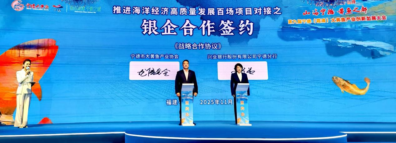 兴业银行宁德分行作为合作金融机构,在启动仪式上与宁德市大黄鱼产业协会正式签署战略合作协议,以蓝色金融创新实践助力“中国大黄鱼之都”产业高质量发展,为这条承载宁德城市名片的“黄金鱼”注入金融活水。