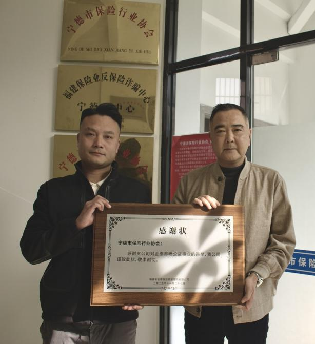 11月27日,暖意涌动的宁德保协迎来了一场特别的致谢——金泰公司副总经理郭润宇携旗下宁德金泰园养老院一线负责人张文正及院内工作人员,专程送来一面镌刻着感谢心意的牌匾,以此回馈宁德保协在今年 “7・8 全国保险宣传日” 期间的暖心善举。彼时,宁德保协为养老院捐赠的爱心座椅,不仅为院内老人增添了休憩便利,更传递了保险行业关爱社会、温暖民生的责任担当,这份情谊也成为此次送牌致谢的核心初衷。