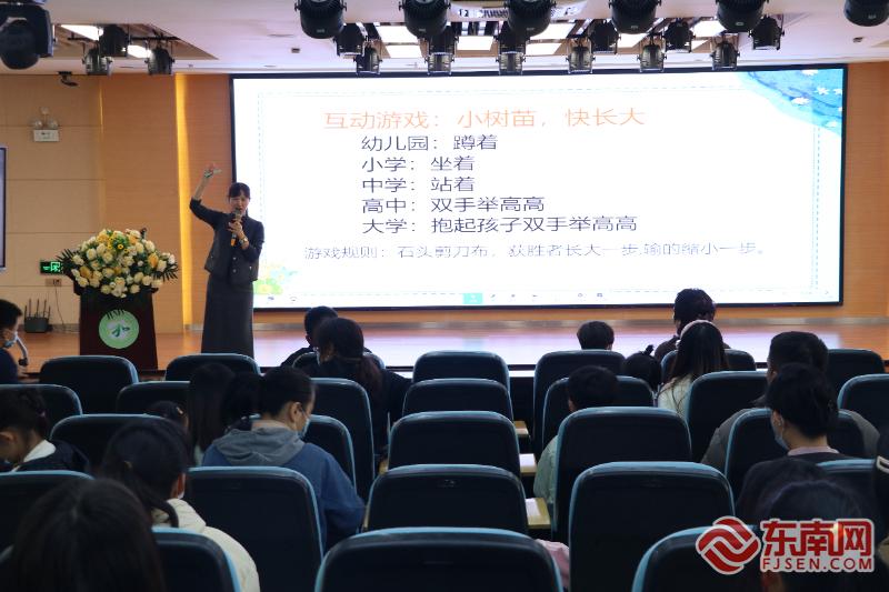 互动环节。东南网记者 江琳琳 摄 家庭教育互动课堂特邀宁德师范学院附属小学副校长、高级教师刘小春担任主讲。刘小春老师聚焦“亲子沟通技巧”与“家庭责任意识”等关键主题,精心设计情景模拟、角色扮演、分享交流等多元化互动环节,结合典型家庭教育案例深度剖析亲子沟通中的常见误区,系统传授“倾听式回应”“鼓励式表达”“共情式沟通”等实用技巧,为家长搭建起科学育儿的学习交流平台,助力构建和谐稳固的家庭情感联结。