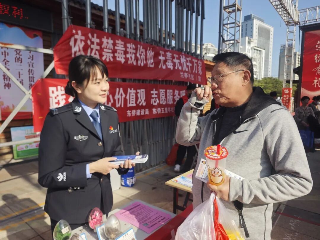 活动当天,兰亭广场气氛热烈。东侨公安志愿服务摊位前吸引了众多群众驻足咨询。反诈中心民警结合近期高发的电信网络诈骗典型案例,通过发放宣传手册、讲解识别技巧、推广“国家反诈中心”APP等方式,面对面、零距离向群众普及防骗知识,尤其针对老年群体、个体工商户等易受骗人群进行了重点宣讲,筑牢全民反诈防线。