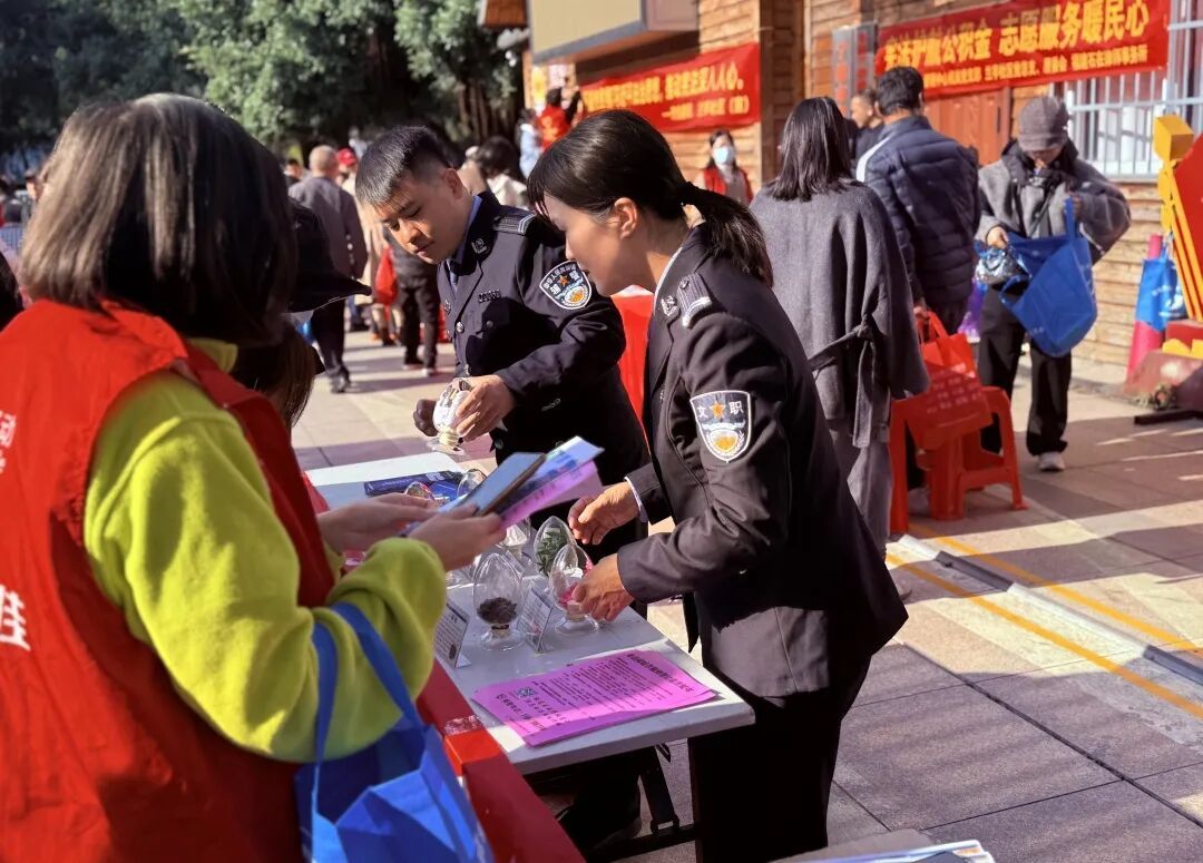东南网12月6日讯(通讯员 吴晓烨)12月5日上午,“汇聚志愿力量 共建美好社会”新时代文明实践便民志愿服务主题活动在兰亭广场举行。东侨公安分局组织反诈中心、禁毒大队民警辅警参与,将反诈、禁毒等专业防范知识融入志愿服务全过程,以实际行动助力平安东侨建设。