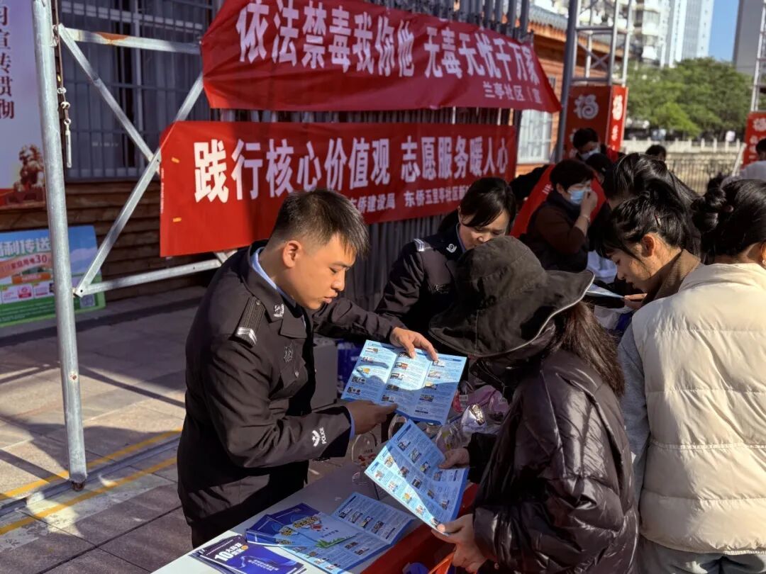 禁毒大队民警通过展示仿真毒品模型、发放禁毒宣传资料、解答法律咨询等形式,向群众详细讲解毒品的种类、危害以及相关法律法规,引导广大群众特别是青少年树立“健康人生、绿色无毒”的生活理念,增强识毒、防毒、拒毒的意识和能力。 此次活动由兰亭社区新时代文明实践站协办,东侨经济技术开发区融媒体中心提供支持,各社区工作人员、志愿服务项目相关人员及辖区群众广泛参与。东侨公安以志愿服务为纽带,既传递了志愿服务精神,又精准普及了反诈禁毒知识,切实将平安服务送到群众身边。 |