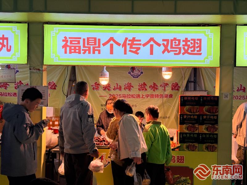 本地特色小吃受消费者青睐。东南网记者 周涛 摄 在福鼎个传个鸡翅展位前,热气腾腾的蜜汁鸡翅刚出锅便吸引不少消费者排队抢购,香气萦绕间满是烟火气。“我们的蜜汁鸡翅原材料可溯源,用42道纯中药卤制,配料干净,老人小孩都能放心吃。这是有30年历史的福鼎老字号,还是非遗传承技艺品和中华名小吃呢!” 展位负责人吴经理一边招呼顾客,一边向过往消费者介绍产品亮点。他告诉记者,这是企业第二次参加此类活动,去年首届宁德马拉松嘉年华就曾亮相,“马拉松赛事能吸引省内外甚至国内外的客人,供销社给我们民营企业搭了个好平台,既能卖产品又能打品牌,就是想让咱宁德的好东西被更多人知道。”