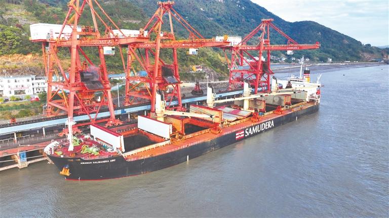 12月5日,载有5.5万吨煤炭的印度尼西亚籍“阿曼娜”货轮稳稳靠泊宁德口岸白马港区大唐码头(如图)。这艘货轮的顺利入境,标志着宁德口岸2025年度出入境(港)船舶查验量正式突破2000艘次,预计全年船舶验放量将超过2100艘次。