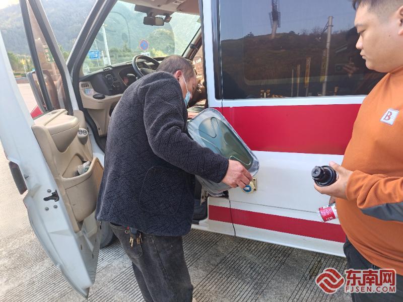 救护车司机施师傅正在为车辆注油。宁德高速公司供图 得知距离收费站最近的加油站约1公里路程后,李州国没有丝毫迟疑,转身对救护车司机说:“上我的车,我带你去买油!”话音刚落,他便驾驶自己的私家车,载着司机火速赶往加油站。“李班长一路上都在安慰我,说别担心,大家同心协力一定来得及。”事后,救护车司机提及当时的情景仍满怀感激。 在两人奔赴加油站的七分钟里,其余收费站工作人员始终守护在救护车旁,时刻观察病患状况,以温和的话语缓解医护人员及家属的焦虑。很快,燃油被送达,随着注入油箱,救护车引擎重新发出有力的轰鸣声,再次启程,收费站工作人员悬着的心终于落下。 |