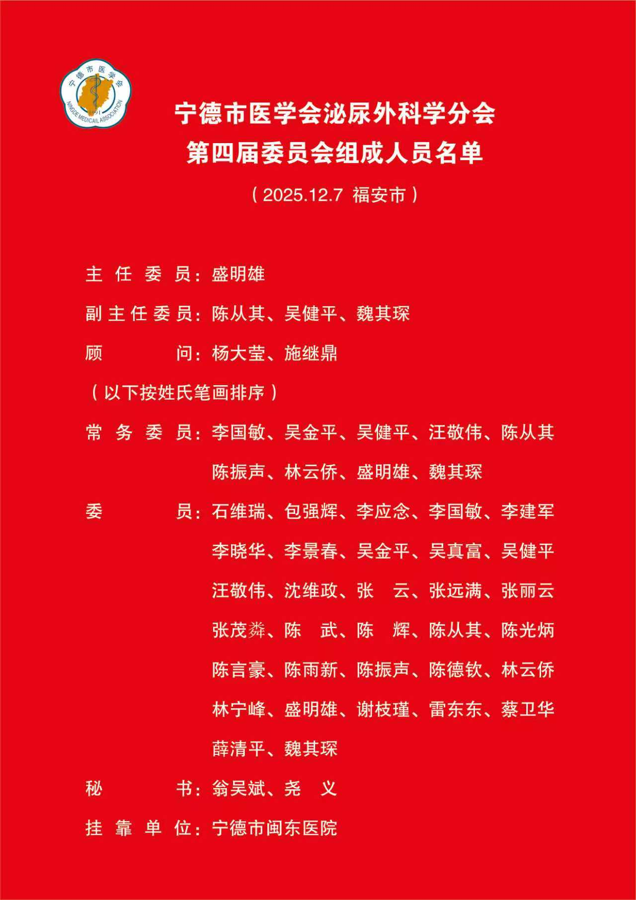 宁德市医学会泌尿外科学分会换届改选盛明雄当选主委