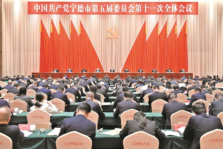 12月11日,中共宁德市委五届十一次全会举行。 本报记者 郑镇 摄 中国共产党宁德市第五届委员会第十一次全体会议决议(2025年12月11日中国共产党宁德市第五届委员会第十一次全体会议通过) 中国共产党宁德市第五届委员会第十一次全体会议,于2025年12月11日召开。 出席会议的有市委委员28人,市委候补委员6人。市纪委常委和有关方面负责同志,在宁党的二十大代表、省第十一次党代会代表和市第五次党代会代表中的部分专家学者等列席会议。 全会由市委常委会主持,市委书记张永宁讲话。 全会深入学习贯彻党的二十届四中全会精神和习近平总书记在福建考察时的重要讲话精神,以及省委十一届九次全会精神,听取和讨论了张永宁受市委常委会委托所作的工作报告,审议通过了《中共宁德市委关于制定宁德市国民经济和社会发展第十五个五年规划的建议》。张永宁就《建议(讨论稿)》向全会作了说明。 全会充分肯定了今年以来市委常委会的工作。一致认为,市委常委会以习近平新时代中国特色社会主义思想为指导,全面贯彻落实党的二十大和二十届历次全会精神,深入学习贯彻习近平总书记在福建考察时的重要讲话精神,深刻领悟“两个确立”的决定性意义、坚决做到“两个维护”,聚焦“牢记嘱托、谱写篇章”主题主线,持续深化拓展“深学争优、敢为争先、实干争效”行动,全力以赴稳增长,推动“两创”深度融合,深化改革开放,念好新时代“山海经”,大力传播“闽东之光”,加强社会主义民主法治建设,保障改善民生,纵深推进全面从严治党,全方位推动高质量发展,奋力谱写“宁德篇章”取得更大实效。 全会高度评价“十四五”时期宁德发展取得的重大成就。一致认为,五年来,市委坚持以习近平新时代中国特色社会主义思想为指导,深入贯彻习近平总书记重要讲话重要指示批示精神,全面落实党中央和省委决策部署,团结带领全市人民迎难而上、砥砺前行,经受住世纪疫情严重冲击,有效应对一系列重大风险挑战,奋力谱写“宁德篇章”取得显著成效,综合实力跃上新台阶、产业发展实现新突破、城市面貌得到新提升、乡村振兴展现新图景、改革开放形成新优势、“闽东之光”焕发新光彩、民生福祉达到新水平、美丽宁德彰显新颜值、管党治党取得新成效。这些重大成就,从市域层面充分印证了“两个确立”的决定性意义,生动诠释了习近平新时代中国特色社会主义思想的真理伟力和实践伟力。 全会指出,“十五五”时期是我国基本实现社会主义现代化夯实基础、全面发力的关键时期,是全省奋勇争先、再上台阶的关键时期,也是宁德拓展优势、聚力协调的关键时期。一方面,必须以习近平新时代中国特色社会主义思想重要孕育地和实践地的政治优势为引领,以开放包容的人文优势为纽带,以天生丽质的生态优势为底色,以全球领先的“两新”产业优势为根基,以高能富集的创新优势为动力,以绿色硬核的清洁能源优势为支撑,协同赋能、链式拓展,乘势开启高质量发展新一轮增长周期;另一方面,必须深入践行新发展理念,聚力协调、补短强弱,全力破解沿海与山区发展不平衡、产业与城市融合不充分、经济与民生衔接不紧密、二产与三产协同不高效等突出矛盾问题,努力实现更加协调、更加普惠、更可持续的发展。 全会强调,“十五五”时期宁德经济社会发展,必须坚持马克思列宁主义、毛泽东思想、邓小平理论、“三个代表”重要思想、科学发展观,全面贯彻习近平新时代中国特色社会主义思想,深入贯彻党的二十大和二十届历次全会精神,全面落实习近平总书记对福建、对宁德工作的重要讲话重要指示批示精神,传承弘扬习近平总书记在宁德工作期间开创的重要理念和重大实践,统筹推进“五位一体”总体布局,协调推进“四个全面”战略布局,完整准确全面贯彻新发展理念,积极服务和深度融入新发展格局,坚持稳中求进工作总基调,坚持以经济建设为中心,以全方位推动高质量发展为主题,以改革创新为根本动力,以满足人民日益增长的美好生活需要为根本目的,以全面从严治党为根本保障,推深做实“1571”策略体系,推动经济实现质的有效提升和量的合理增长,推动人的全面发展、全体人民共同富裕迈出坚实步伐,奋力谱写全面建设社会主义现代化国家的宁德篇章,确保基本实现社会主义现代化取得决定性进展。 全会指出,“十五五”时期宁德经济社会发展把握以下要求:必须用好习近平新时代中国特色社会主义思想重要孕育地和实践地独特优势,必须坚决扛起全省高质量发展的重要增长极使命担当,必须始终坚持“把心贴近人民”,必须以改革开放总揽经济社会发展全局,必须大力弘扬“弱鸟先飞、滴水穿石”精神。 全会提出了“十五五”时期宁德经济社会发展的主要目标:经济综合实力更加雄厚,海湾城市能级更加强劲,现代化产业体系更加完善,共同富裕基础更加扎实,绿色低碳发展更加显著,“闽东之光”影响更加深远,人民群众生活更加美好。在此基础上再奋斗五年,到二〇三五年实现全市经济实力、科技实力、综合实力大幅跃升,人民生活更加幸福美好,在基本实现社会主义现代化中走在前列。 全会提出,打造现代海湾城市,激活“宁德篇章”的动力引擎。深入践行“三大梦想”,一体推进“港、产、城”联动发展,不断提升城市能级和