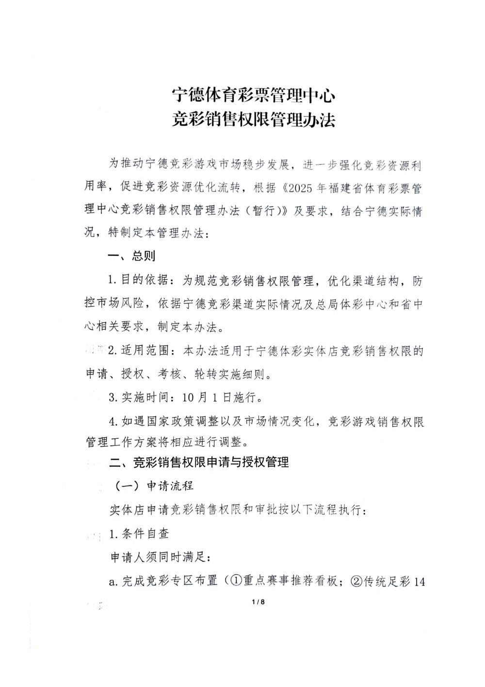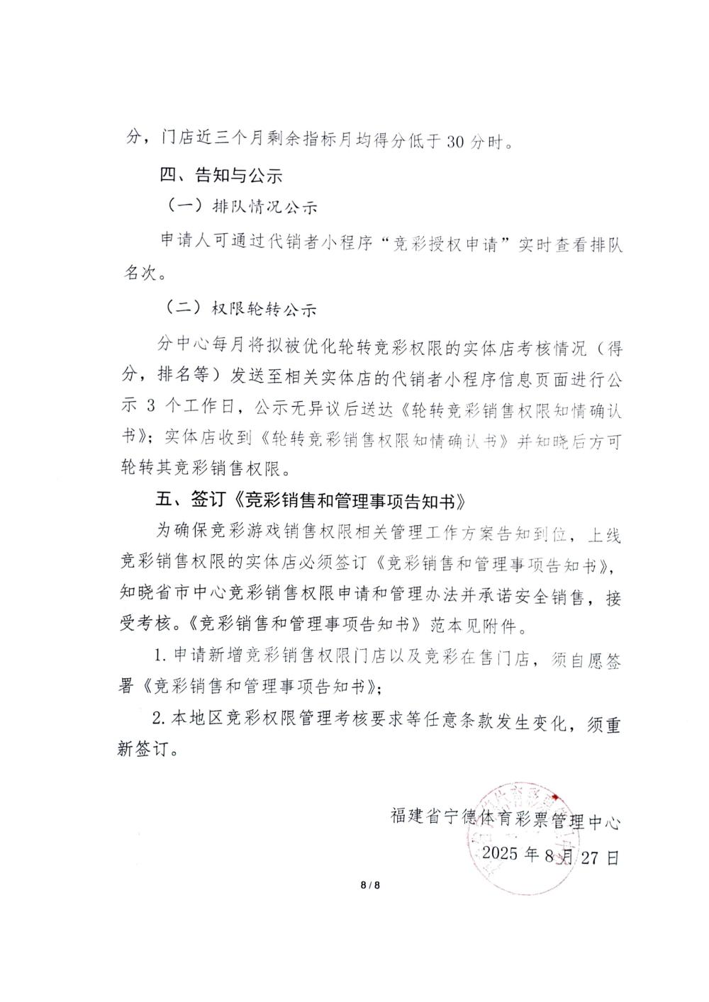 公告:2025年宁德体育彩票管理中心竞彩权限管理办法