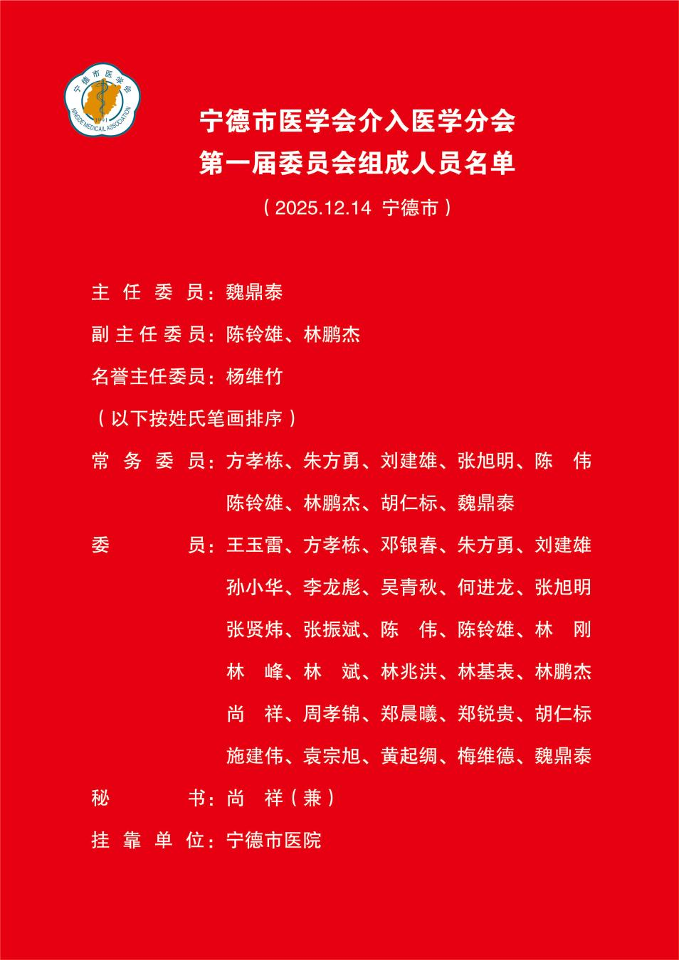宁德市医学会成立介入医学分会 魏鼎泰当选主任委员