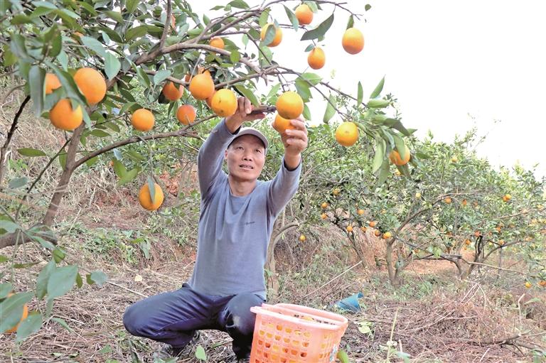 12月17日,福安市穆阳镇桃花谷果农在采摘脐橙。据了解,暖冬时节脐橙迎来采摘季,福安2万多亩脐橙迎来丰收,预计产量达4.5万吨,脐橙产业已成为当地农民增收致富的重要产业。(闽东日报 吴其文 摄)
