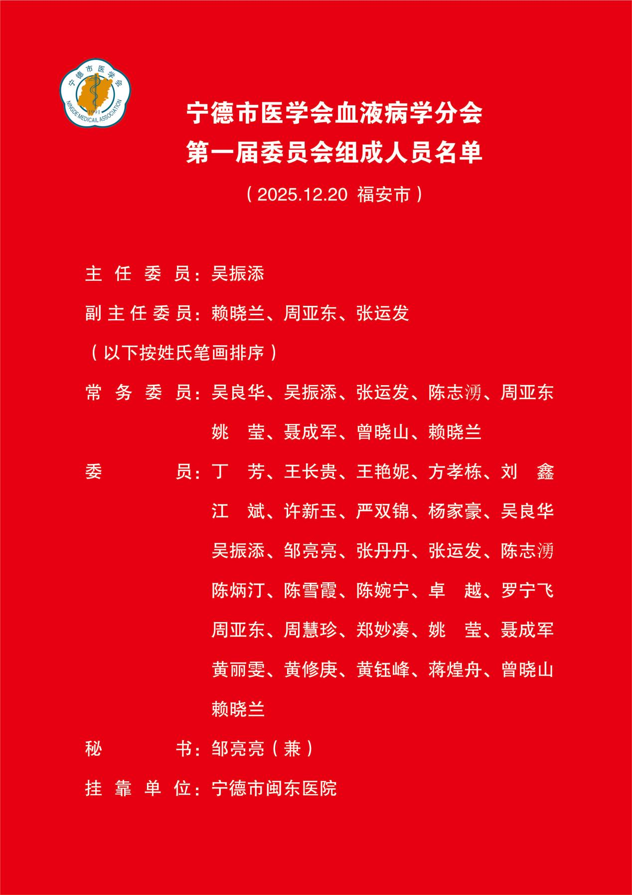 宁德市医学会血液病学分会成立吴振添当选主委