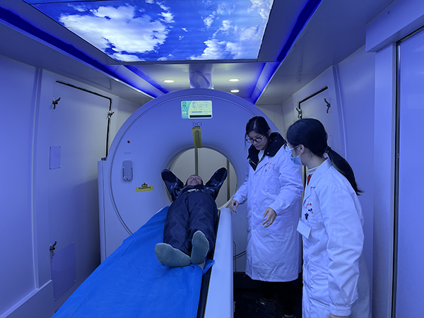“不用跑城区,在镇上就能做免费CT检查,真是太方便了!”刚完成检查的虎贝镇村民陈大爷连连点赞。活动现场,医护人员有序引导村民登记信息、核对身份、进行检查,同时耐心解答村民关于肺部健康、日常防护等方面的疑问,细致讲解筛查报告的关键信息,让村民既享受到便捷服务,又能全面了解自身健康状况。