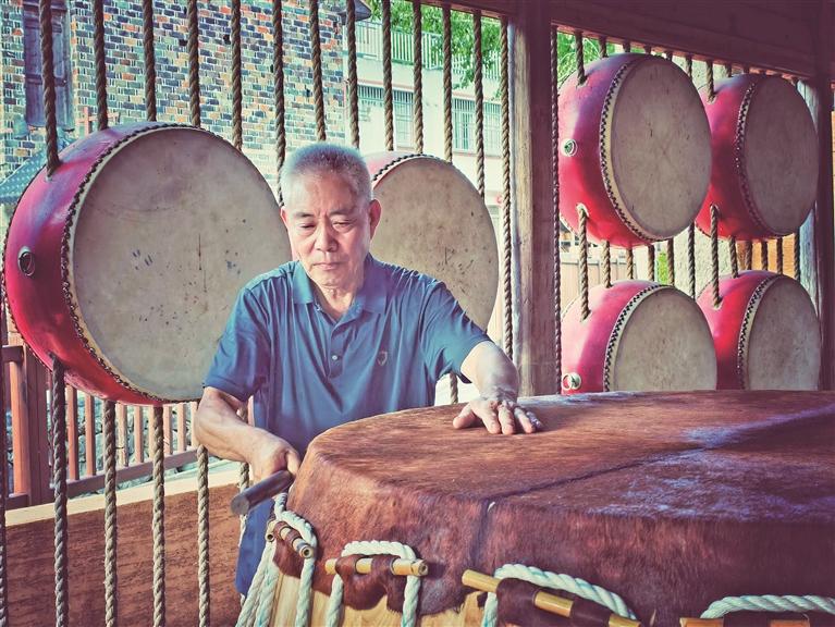 霞洋非遗鼓技。卓仕尉 摄 午后前往霞洋村暖意满怀,今年的秋风没能在入秋之时就吹出“天凉好个秋”的气象,时值寒露并无寒意。斜阳下,几幢粉墙黛瓦的民宅依山而建,一条小溪穿村而过,村口一座凉亭傍水而居,几位老者闲坐其中,虽互不言语,但也有促膝长谈的默契感,池塘里一群鱼儿悠然游动。此景,让我感觉有种走进《过故人庄》之境。 可几声鼓点从不远处传来,那不是流畅的演奏,而像是山雨将至时零落的雨滴。一位长者说:这是制鼓时的敲击。可就是这零星鼓点,击中了我记忆深处关于鼓的密码,或是我的记忆,或是鼓的记忆,一场场一幕幕踩着鼓点排浪而来。 我与鼓的缘分,要从读小学时学校组织的乐队说起。那时候,我有幸被选作小鼓手,第一次见到那面朱漆大鼓时,眼睛都亮了,鼓身裹着鲜亮的红漆,油光锃亮,像一轮蓬勃的小太阳,攥着和手臂差不多粗的鼓槌,每次敲打都得踮着脚尖,心里满是“一槌下去会怎样”的期待,真等敲响了才知道自己力道不济。等能敲响了,可又敲不准节奏,老师教我嘴念心记,可嘴念准了,手又不听使唤。虽有俗语“响鼓不用重槌敲”,可悦耳的鼓声一定要心手相牵。一次次失败,我没有放弃,并非耐性与毅力的使然,全是那能造势的鼓声诱惑和老师的表扬,终于在一次表演亮相时,我能心手合一,气势昂扬,迎来阵阵喝彩,此时,我仿佛明白了“鼓舞”的含义。 鼓,催人奋进;鼓,气壮山河;鼓,有排山倒海之势。这是我在观看古战场影视时,一次次击鼓征战的情景中感受到的,战阵中大鼓压阵,披甲戴盔的勇士擂鼓助战,此情此景中我也提起浑身力气握紧拳头。随着岁月成长,这种激动渐渐内敛,成为一种内力的储蓄。鼓,让我心生敬意的则是庄严肃穆,走进寺庙、宫观、宗祠,一见大鼓,我总会合掌作揖。在我的理解里,寺庙晨钟醒世,暮鼓道安;宫观敲钟警示,击鼓调令;宗祠策鼓执规;古代衙门击鼓立威。鼓的声威从历史的端头一直传到今天,还将催发到明天。 庄严肃穆的鼓,我真不知道它来自何方,可万万没想到柘荣的霞洋村能产出这样的神器。走进作坊,样样都值得我敬畏。制鼓,每一步都透着匠人骨子里的较真。负责选料的师傅说:鼓皮得是上好的黄牛皮,不能有半点瑕疵,选好后要泡在清水里,春季气温较高,泡三四天就够了;冬季天寒,得泡五六天,直到用手摸上去软韧而不松散,才算泡好。接下来剔牛毛、去赘肉,师傅们手里的刀虽小,可刃却磨得极快,他们左手按住牛皮,右手持刀,力道轻得像在抚摸。霞洋村党支部书记在旁边解释,语气里满是对这门手艺的敬畏。我凑过去看,师傅手指关节有些粗大,指腹上满是老茧,可持刀的动作却稳得像定住了一样,每一刀下去,都精准得恰到好处。在我啧啧赞叹时,村党支部书记接着介绍:鼓身的木料更讲究,非得用三十年树龄的杉木,年轻的木头火气大,做出来的鼓音色飘、不沉;太老的木头脆,经不住常年敲打,容易裂。选好的木料要先阴干,不能暴晒,得让水分慢慢散出去,这样做成鼓身材不容易变形。制木时每一片的弧度都得一模一样,隼铆咬合,严丝合缝地环抱成一个桶状,这不是普通的木桶,而是经过精心计算的共鸣腔。师傅们会用手叩击木筒的不同位置,听着回响调整弧度,连木片的厚度都要反复打磨。听着、看着,感觉每一道工序都是朝圣,每个技巧都是匠心凝铸的莲花。 牛皮初成,鼓腔构成,接着蒙鼓,这道工序不仅见技巧,还见哲理。蒙鼓的牛皮不是吹胀,而是拉扯出来,这拉扯讲究一个均衡;鼓面的弹力不是充气,而是击楔、重踩紧皮,这紧皮讲究一个法度;鼓面与鼓腔黏合不是糊浆,更不是捆绑,而是一枚枚竹钉的楔入,这一过程讲究一个准度。见了这些,不能不问这样精湛的手艺在这里是怎么传下来的。 村党支部书记介绍,从清光绪二十五年(1899年)制鼓技艺就在霞洋村扎下了根。那年,一位泰顺的鞔鼓艺人背着工具来到村里,在村口搭了个简易的工坊,敲起了第一面鼓。十七岁的彭朝榜路过时,被那咚咚的鼓声勾住了脚步,站在工坊外听了一下午,连饭都忘了吃。后来,他主动找到艺人,要拜师学艺,艺人见他心诚,便把制鼓的手艺毫无保留地教给了他。彭朝榜为自己取了个艺名“彭复顺”,一个“复”字,藏着他最朴素的愿望:让这鞔鼓的手艺、这振奋人心的鼓声,能在村里一代代传下去,循环往复、生生不息。 一百多年来,“彭氏鞔鼓”的手艺在霞洋村从未断过档。从彭朝榜开始,手艺传给了儿子,儿子又传给了孙子,再后来,村里越来越多的人跟着学,有的是父子相传,有的是师徒相授,不管是哪种方式,大家都守着一个规矩:每一道工序都不能省,每一个细节都不能马虎,虔诚敬业、匠心传艺。做一面鼓会择一个黄道吉日,净手焚香开工,竣工后,在鼓皮固定处绘上寓意吉祥的“五雷令”符号,最后封上红布条。借着庄重的仪式感把自己的祈愿、对这门手艺的敬畏,连同鼓的声音,一并封存进鼓里,等着有一天,又是黄道吉日时,一双有力的手握住鼓槌,奋力一击,让那声“咚”的轰鸣,石破天惊。正是这样,这项手工艺成了市级非物质文化遗产。 鼓声不绝,催发万象。近几年,柘荣县以文化兴县,重视非物质文化遗产的保护与传承,“彭氏鞔鼓”也迎来了新的机遇。县里不仅给村里的制鼓工坊拨了专项资金,帮着改善设备、扩大规模,还组织匠人参加各种非遗展示活动,让“彭氏鞔鼓”走出柘荣,被更多人知道。现在的霞洋村“
